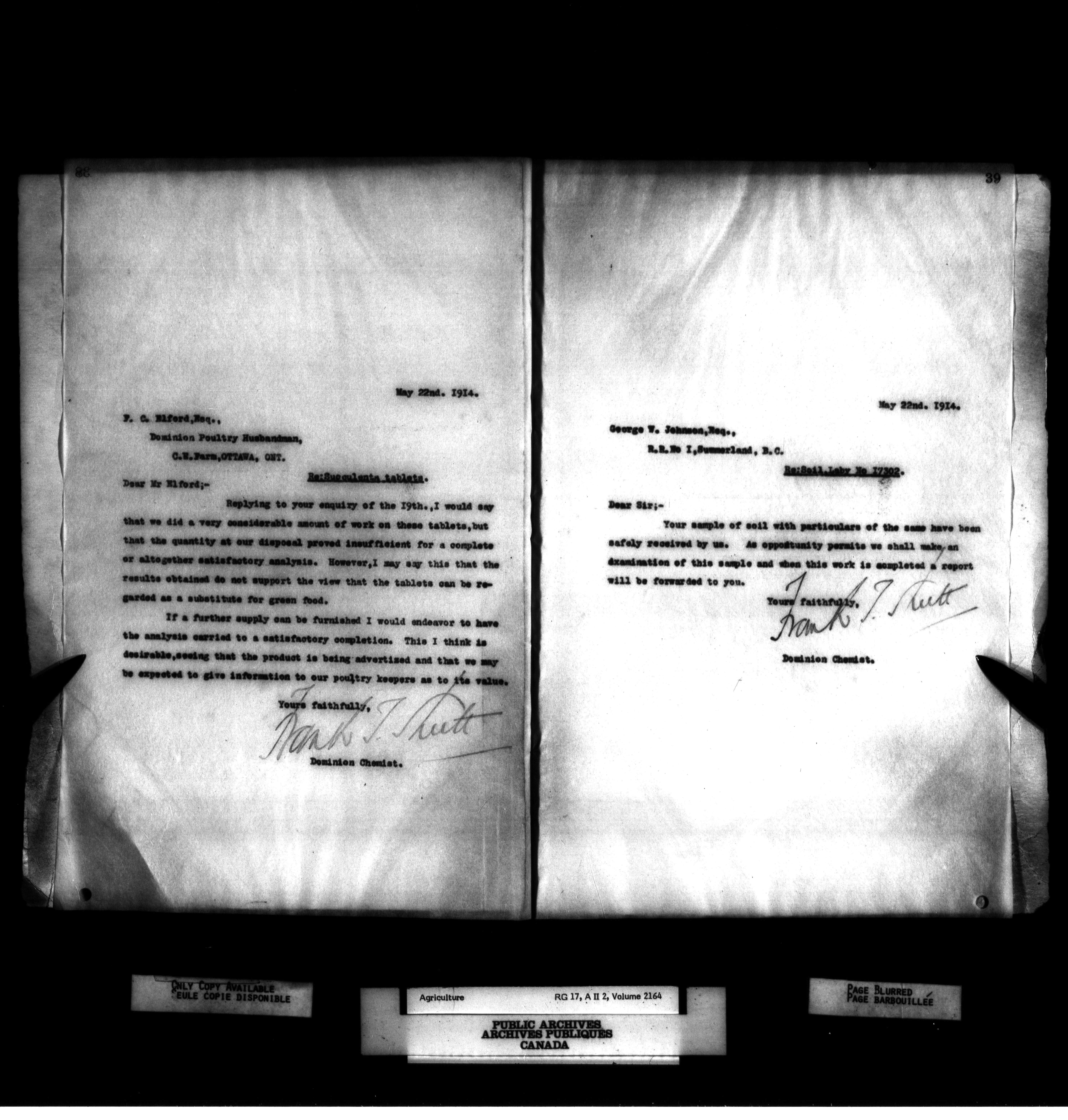 Department of Agriculture : Dominion Chemist, letterbooks - 1075