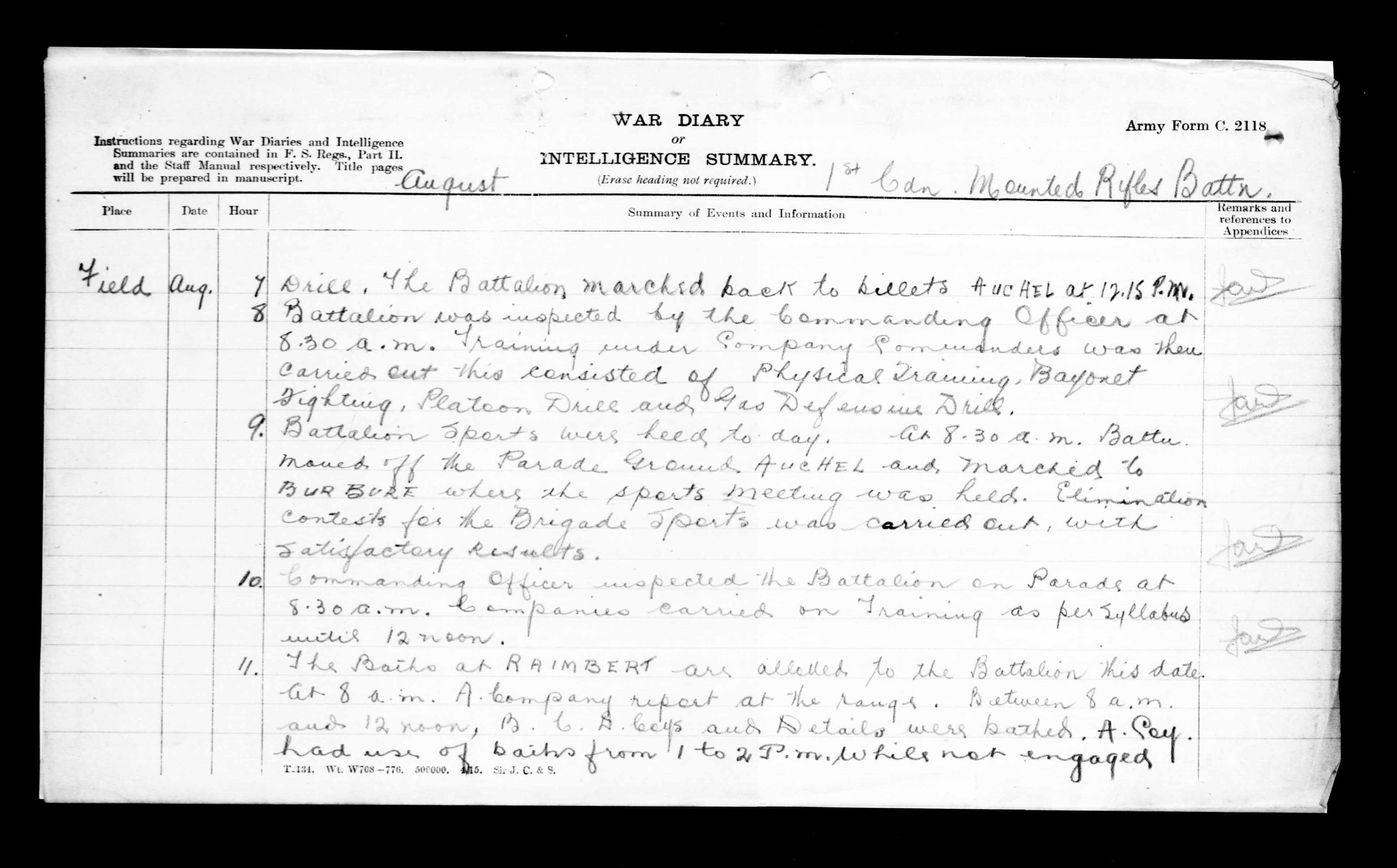 War Diaries of the First World War : T-10754
