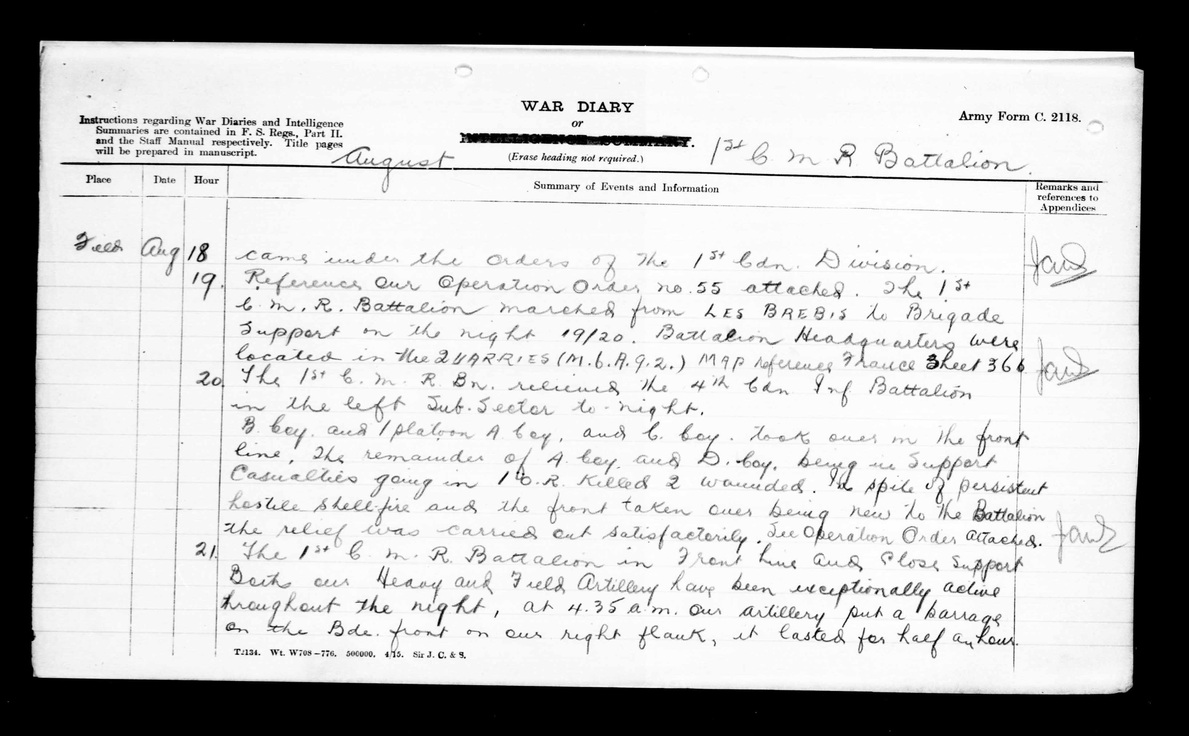War Diaries of the First World War : T-10754