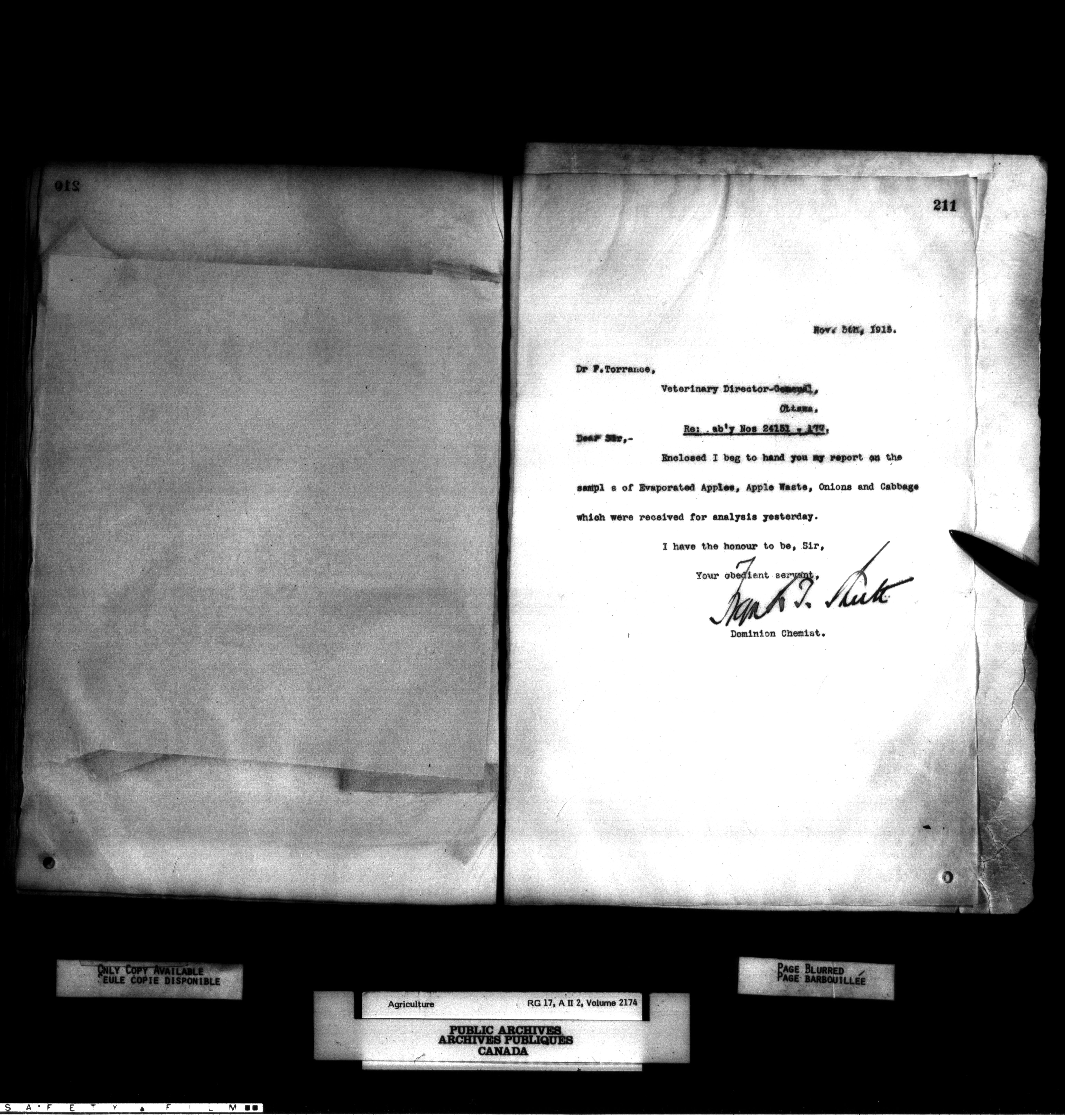 Department of Agriculture, Dominion Chemist : Letterbooks, 1889 - 1933 : T-1079