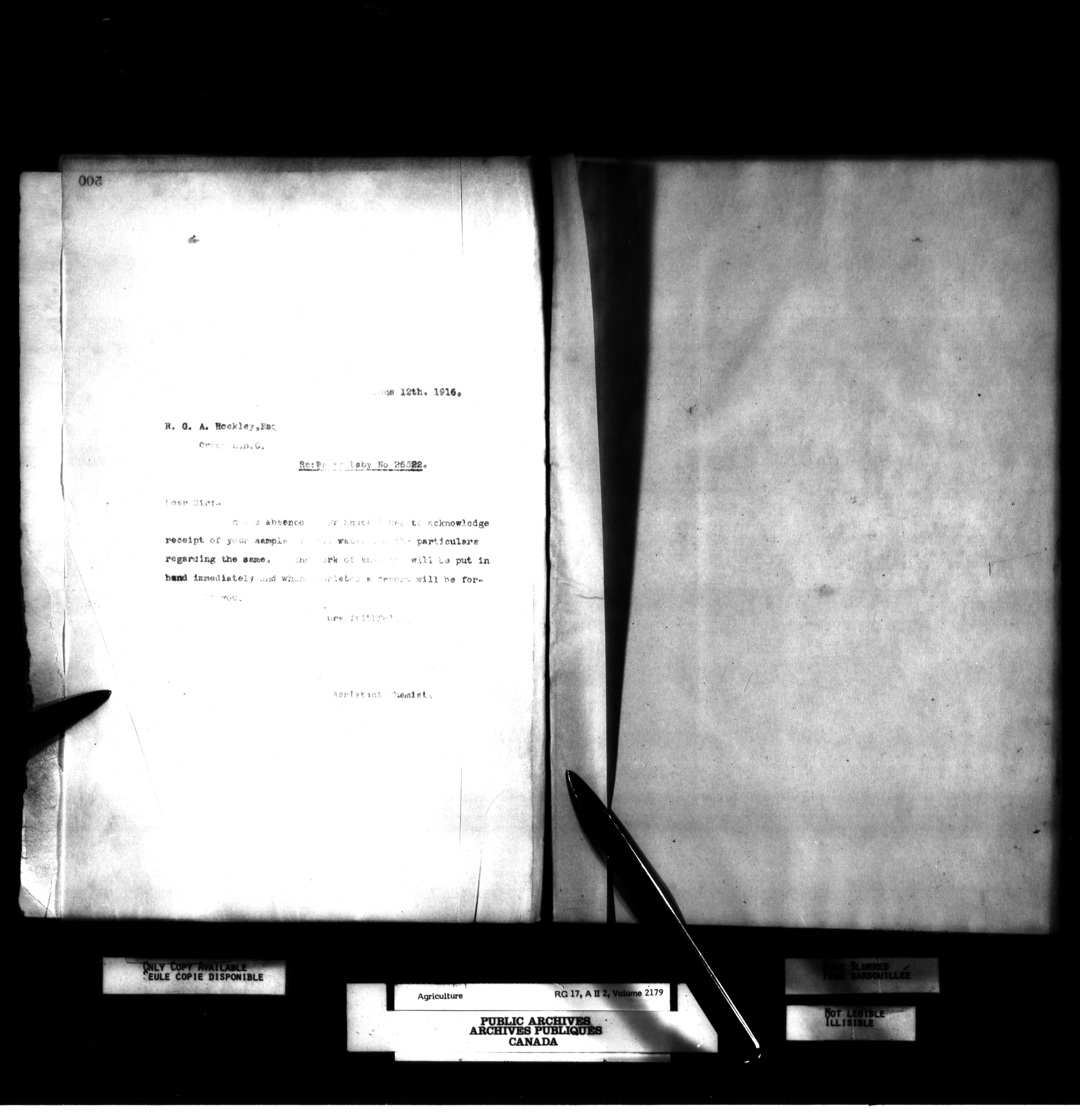 Department of Agriculture, Dominion Chemist : Letterbooks, 1889 - 1933 : T-1081