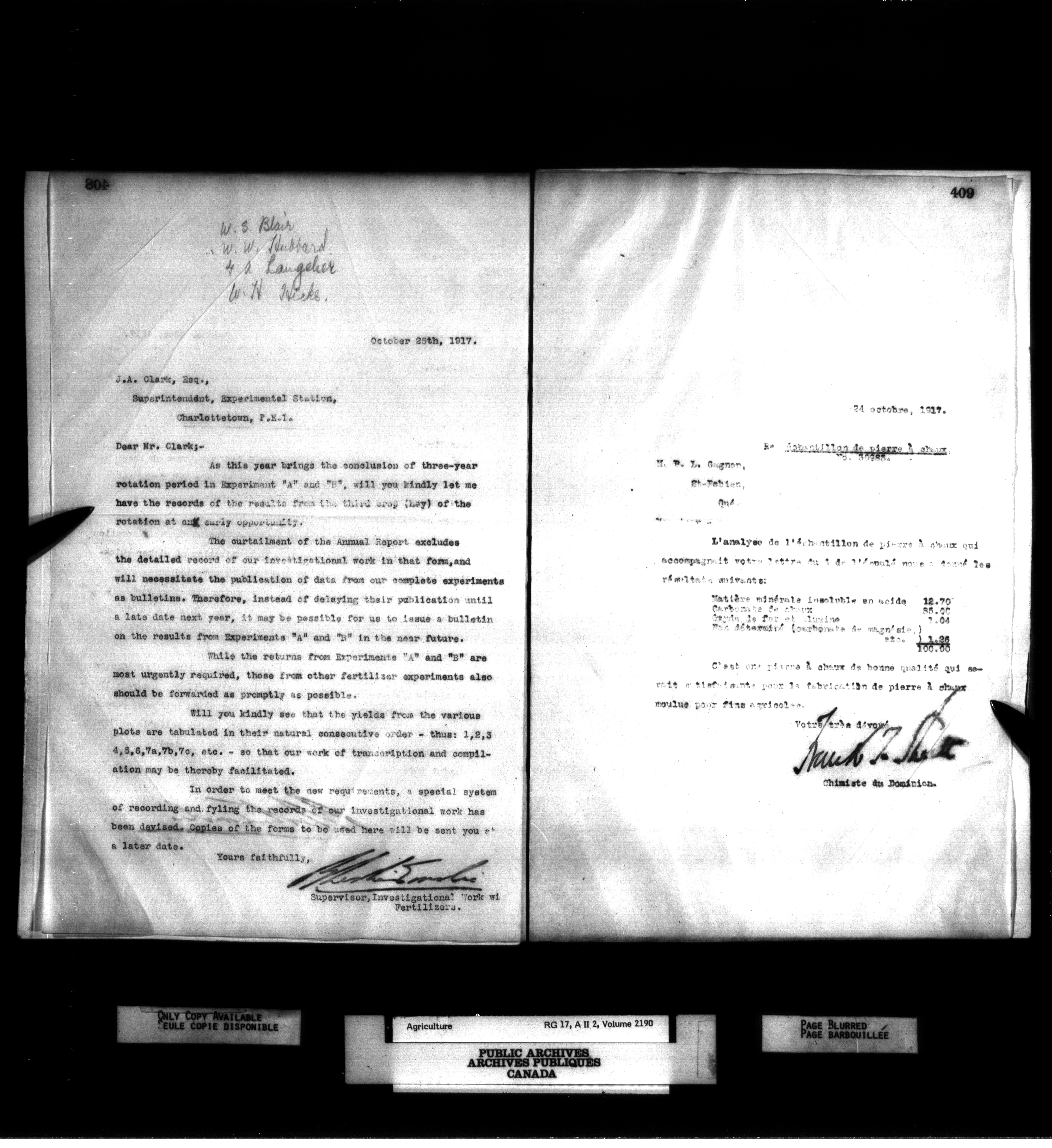 Department of Agriculture, Dominion Chemist : Letterbooks, 1889 - 1933 : T-1085