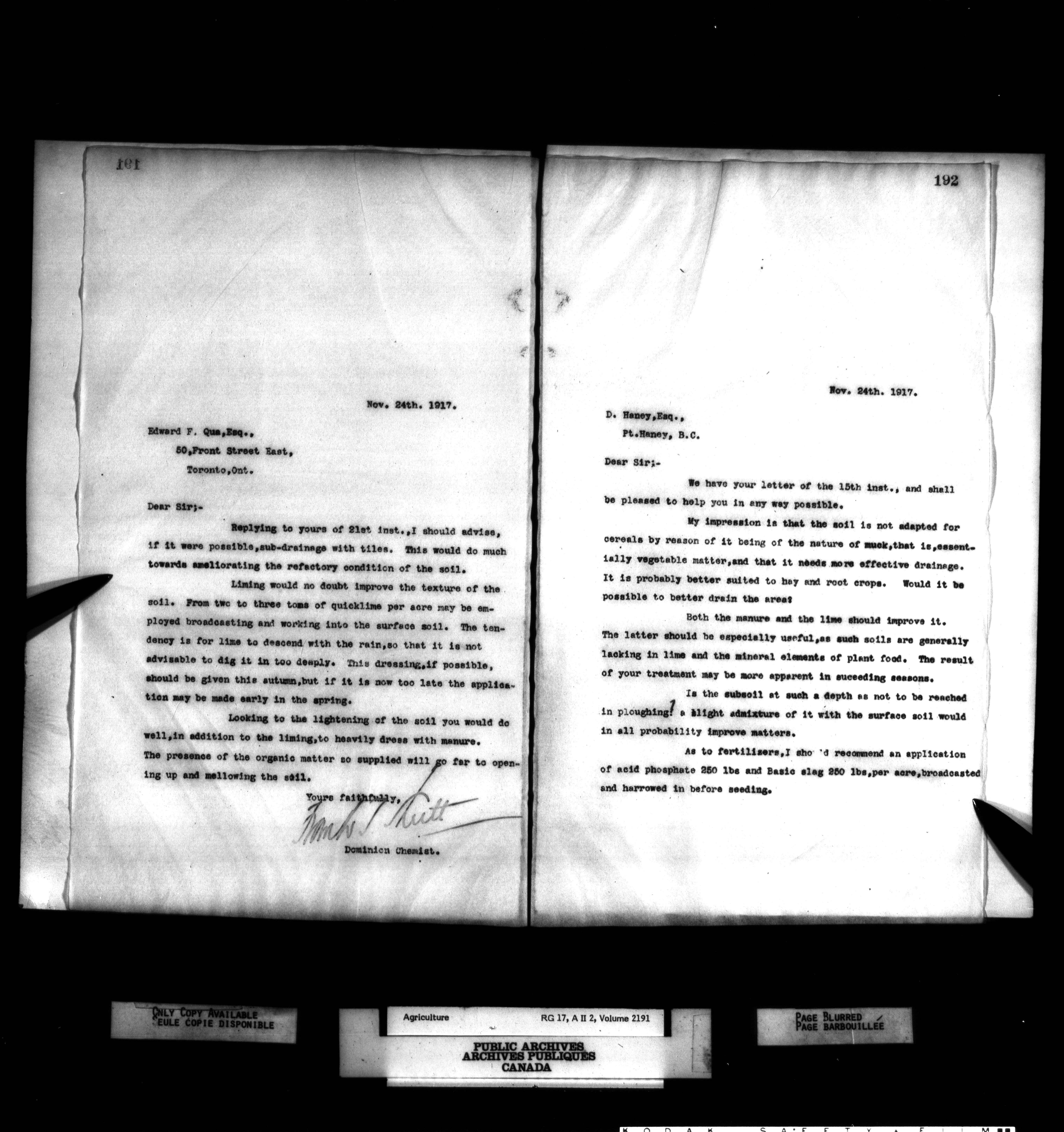 Department of Agriculture, Dominion Chemist : Letterbooks, 1889 - 1933 : T-1086