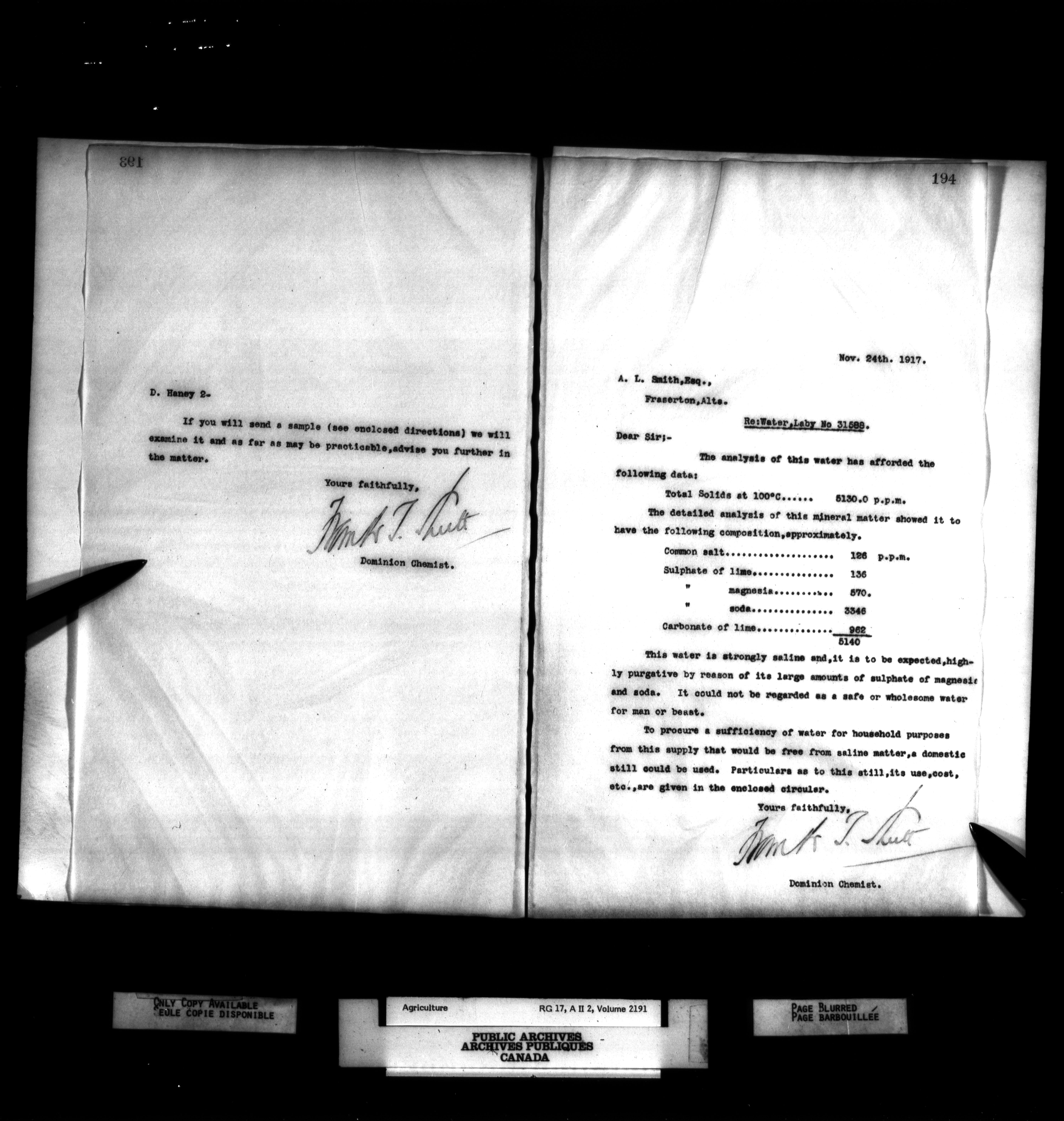 Department of Agriculture, Dominion Chemist : Letterbooks, 1889 - 1933 : T-1086