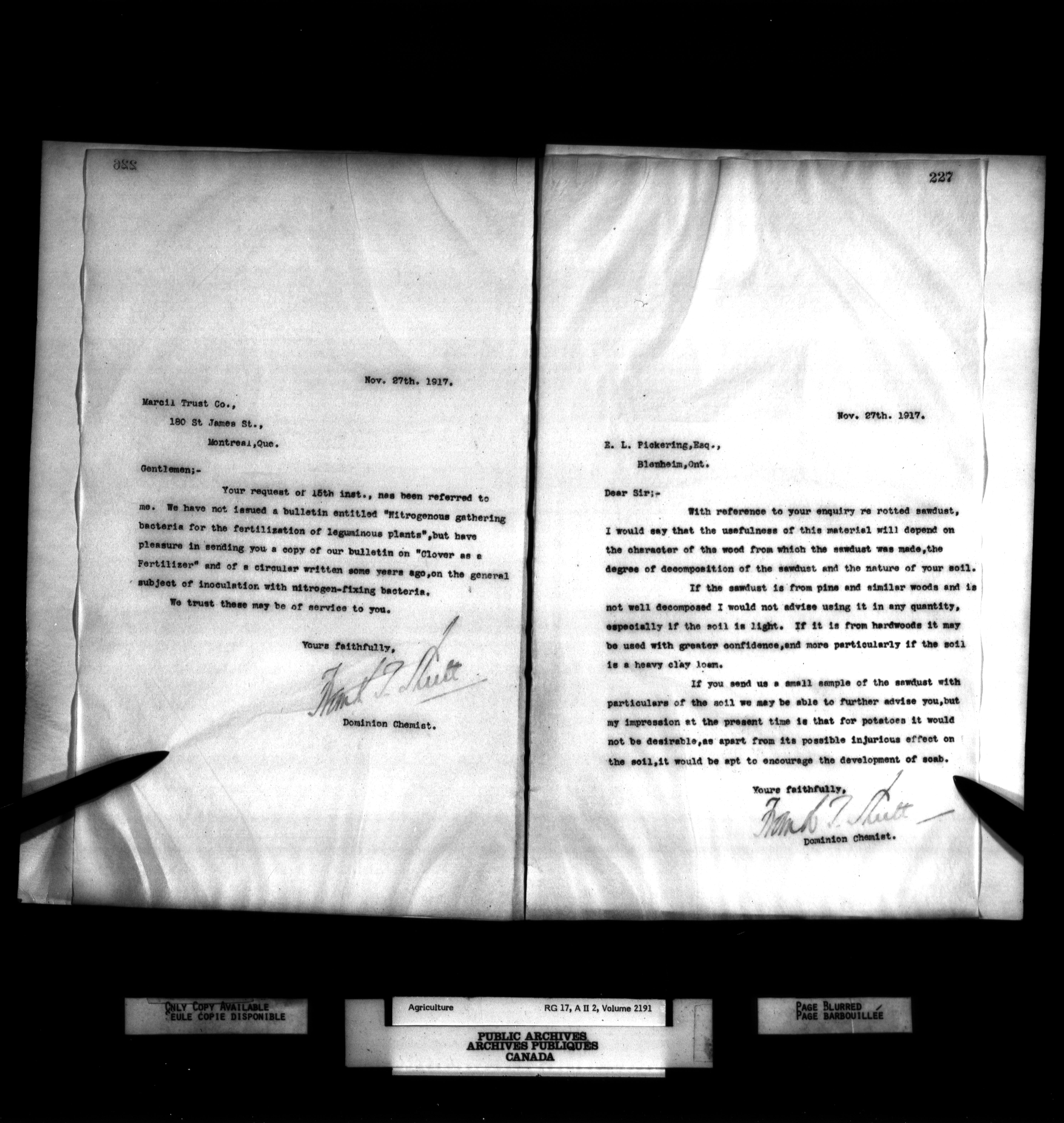Department of Agriculture, Dominion Chemist : Letterbooks, 1889 - 1933 : T-1086