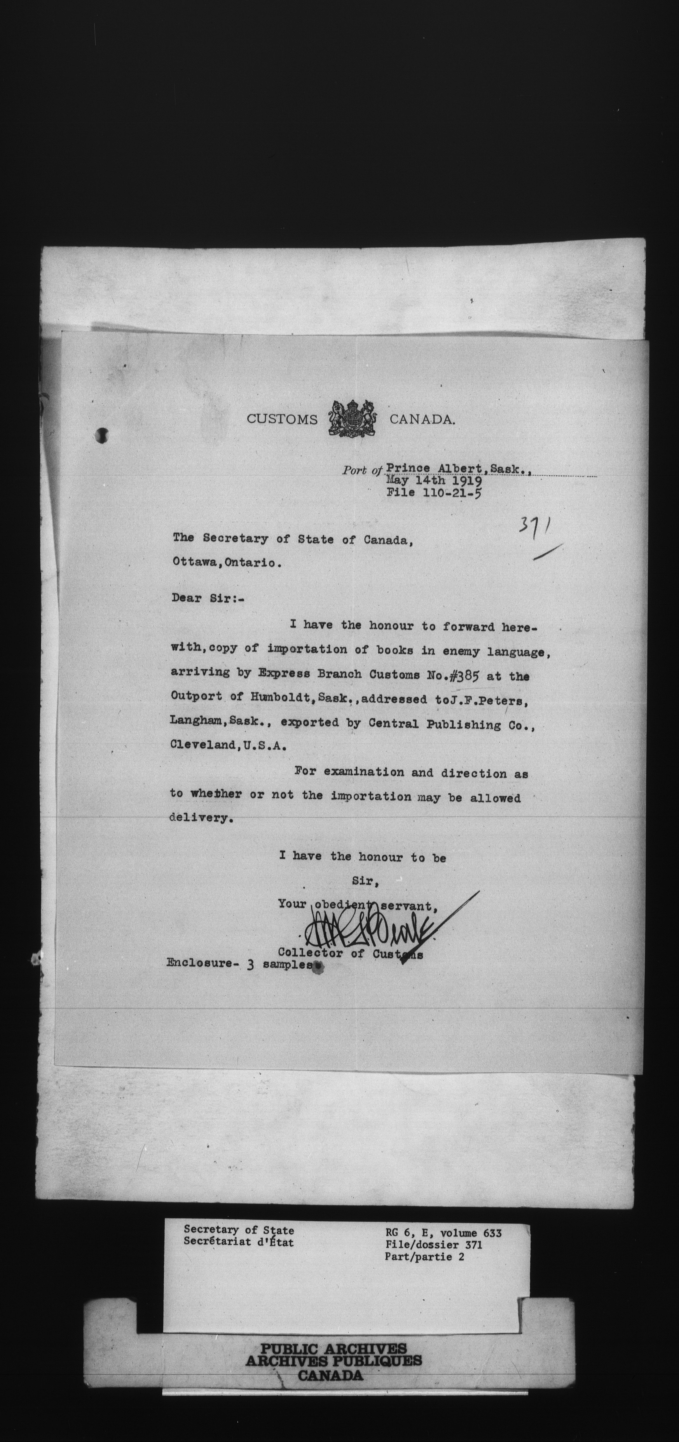 Secretary of State : Chief Press Censor, 1915-1920 - 109
