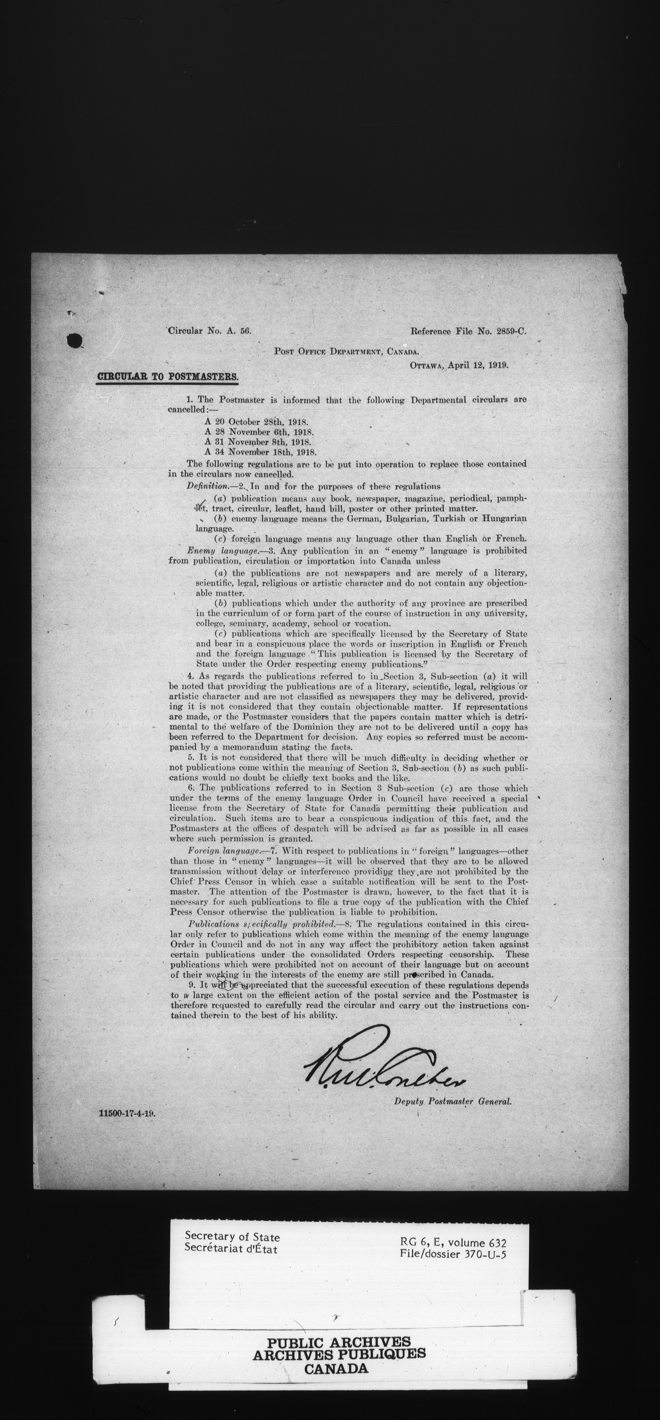 Secretary of State : Chief Press Censor, 1915-1920 - 109