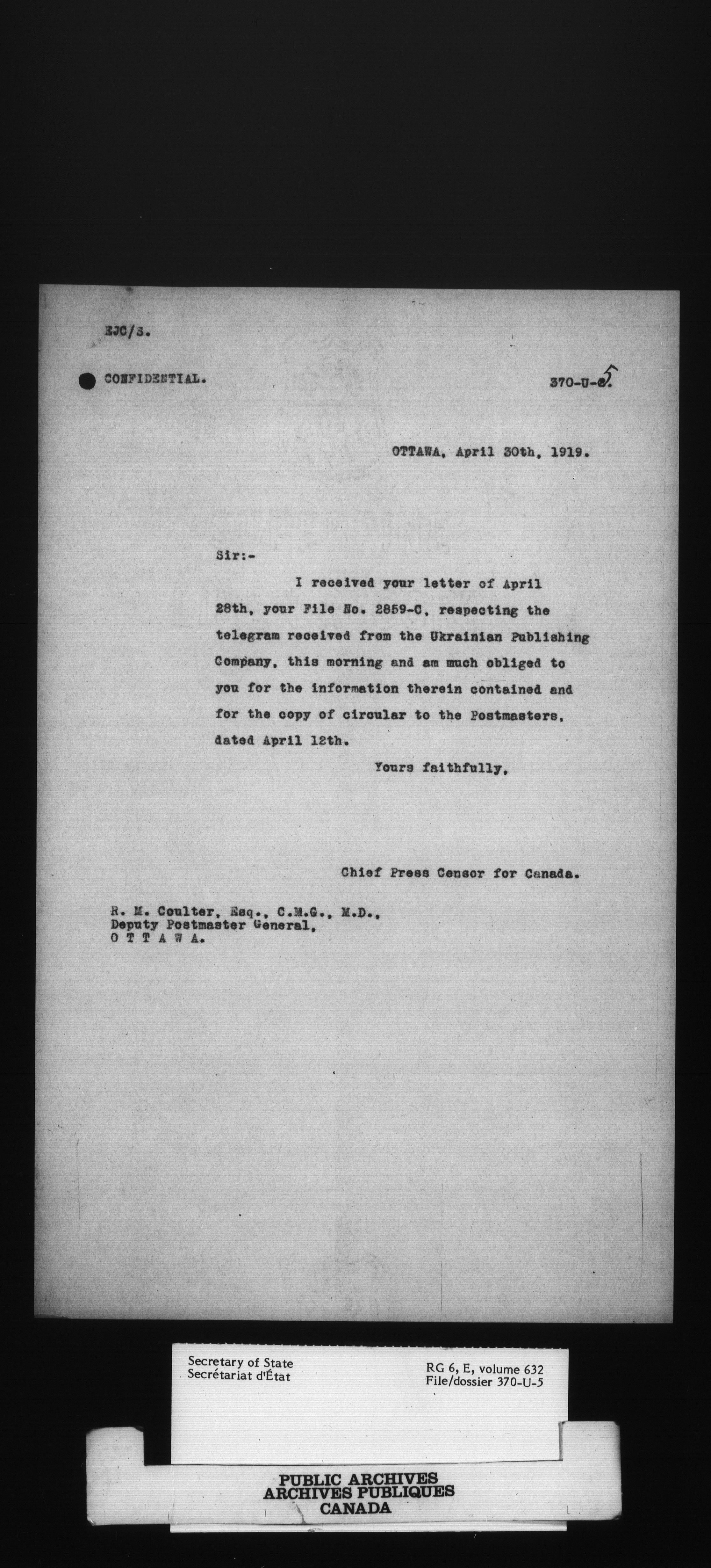 Secretary of State : Chief Press Censor, 1915-1920 - 109