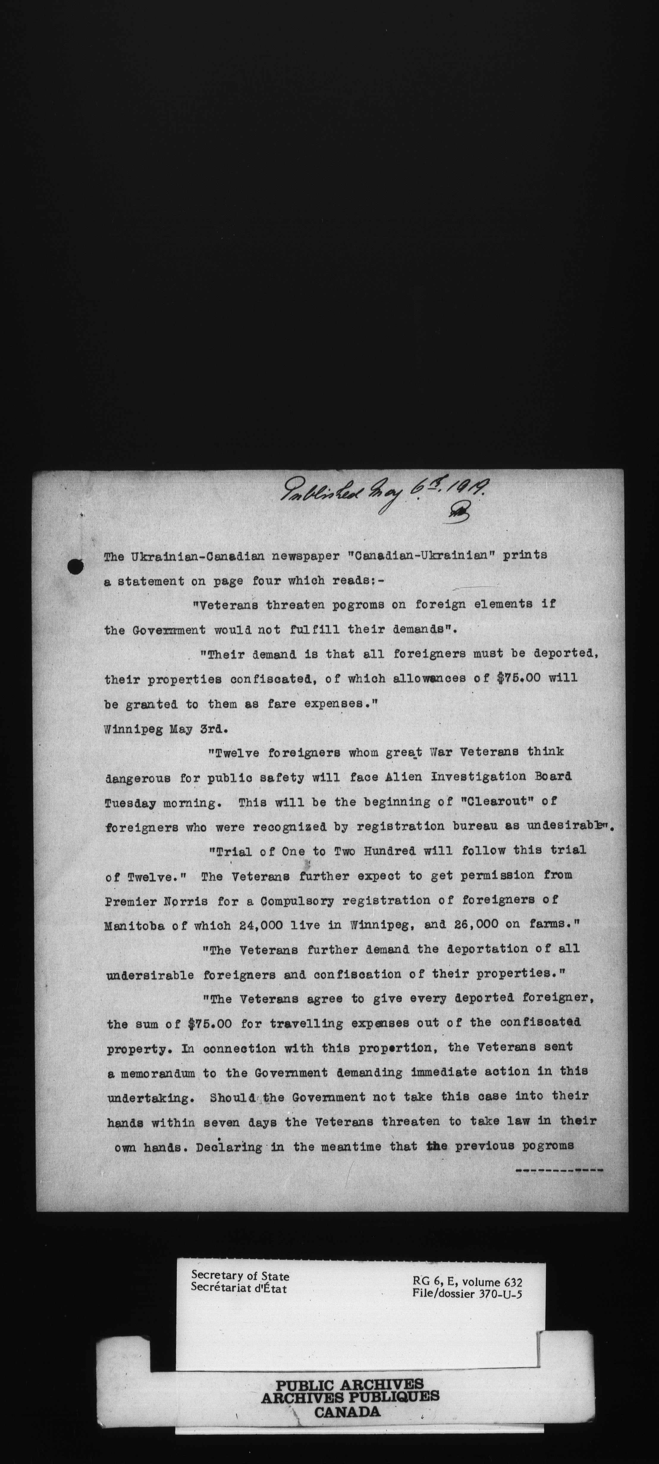 Secretary of State : Chief Press Censor, 1915-1920 - 109