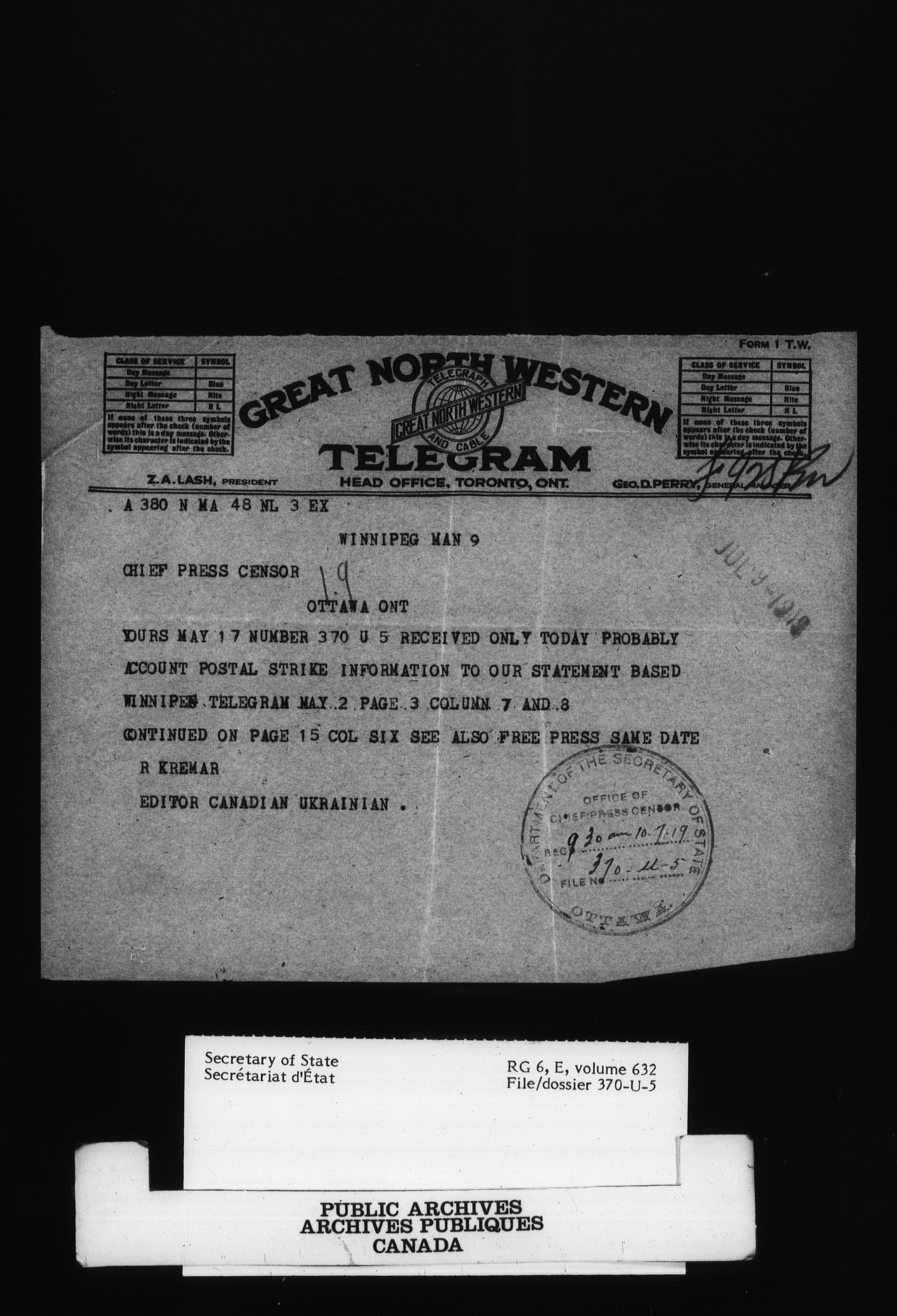 Secretary of State : Chief Press Censor, 1915-1920 - 109