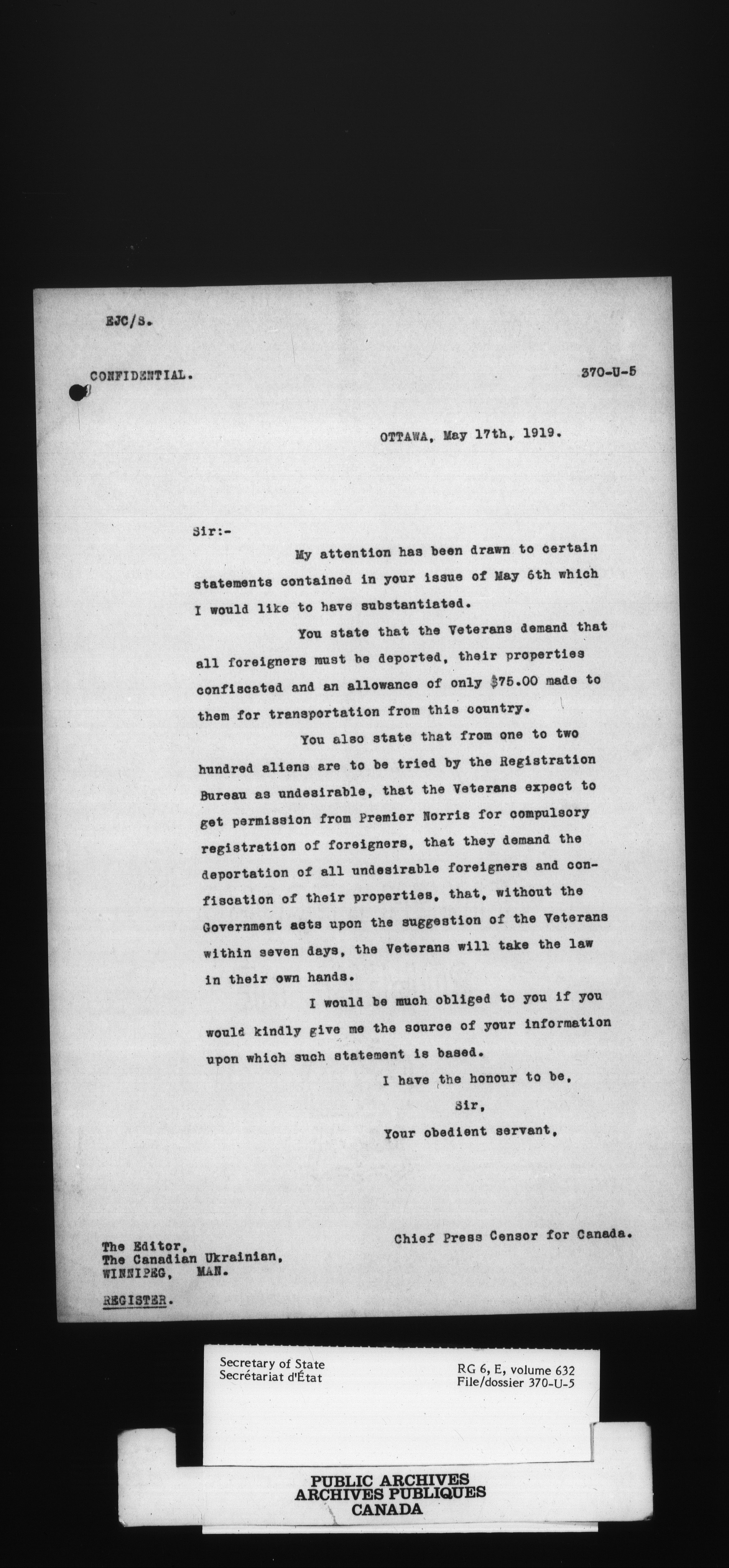 Secretary of State : Chief Press Censor, 1915-1920 - 109