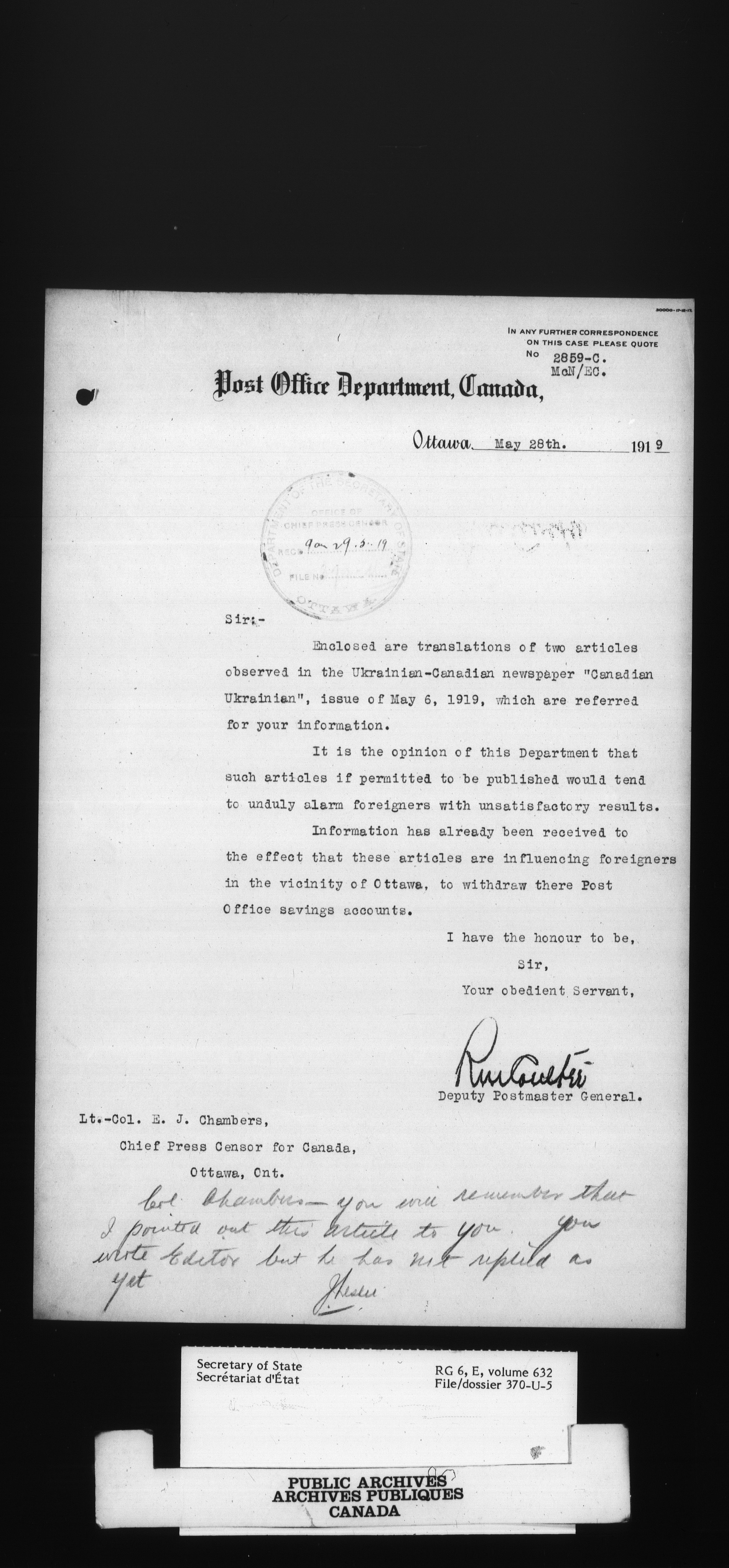 Secretary of State : Chief Press Censor, 1915-1920 - 109