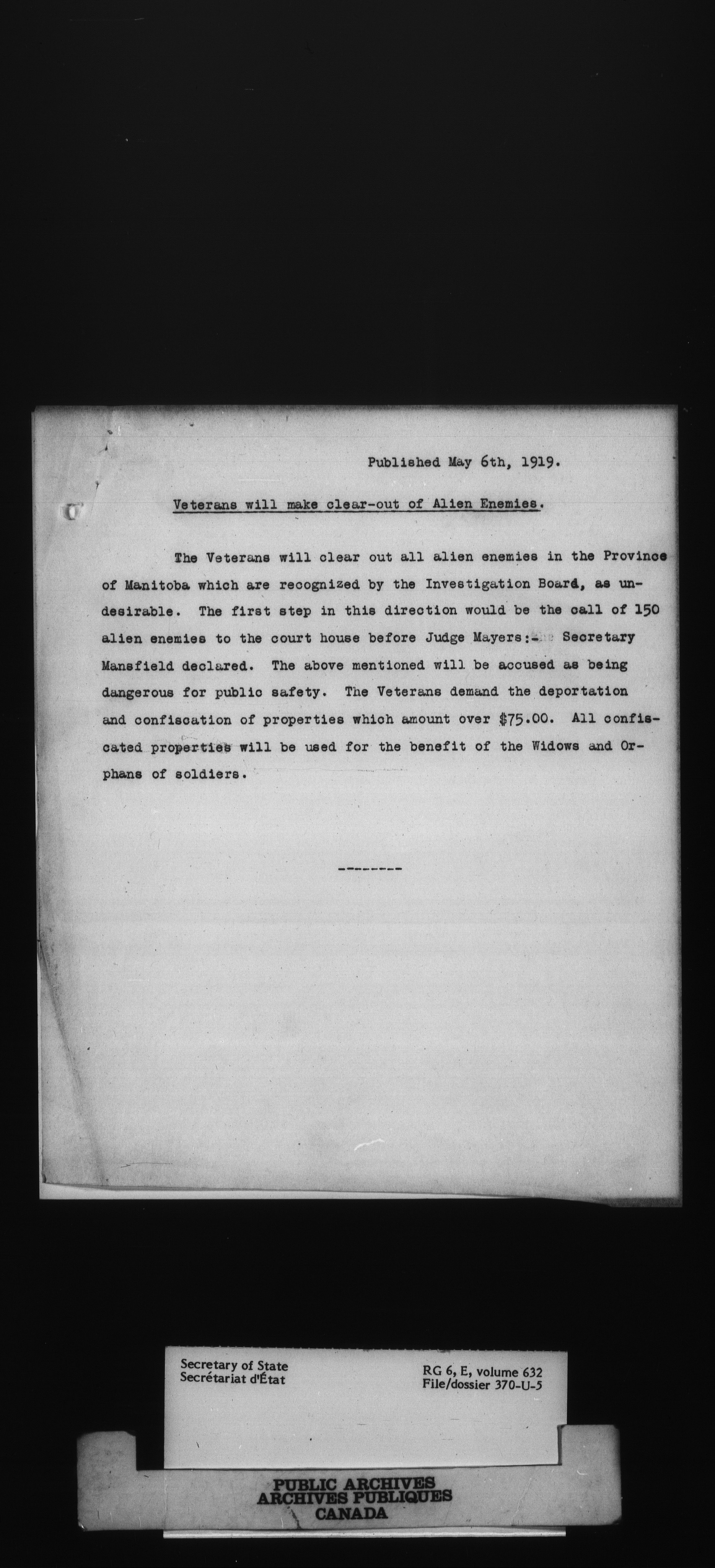 Secretary of State : Chief Press Censor, 1915-1920 - 109