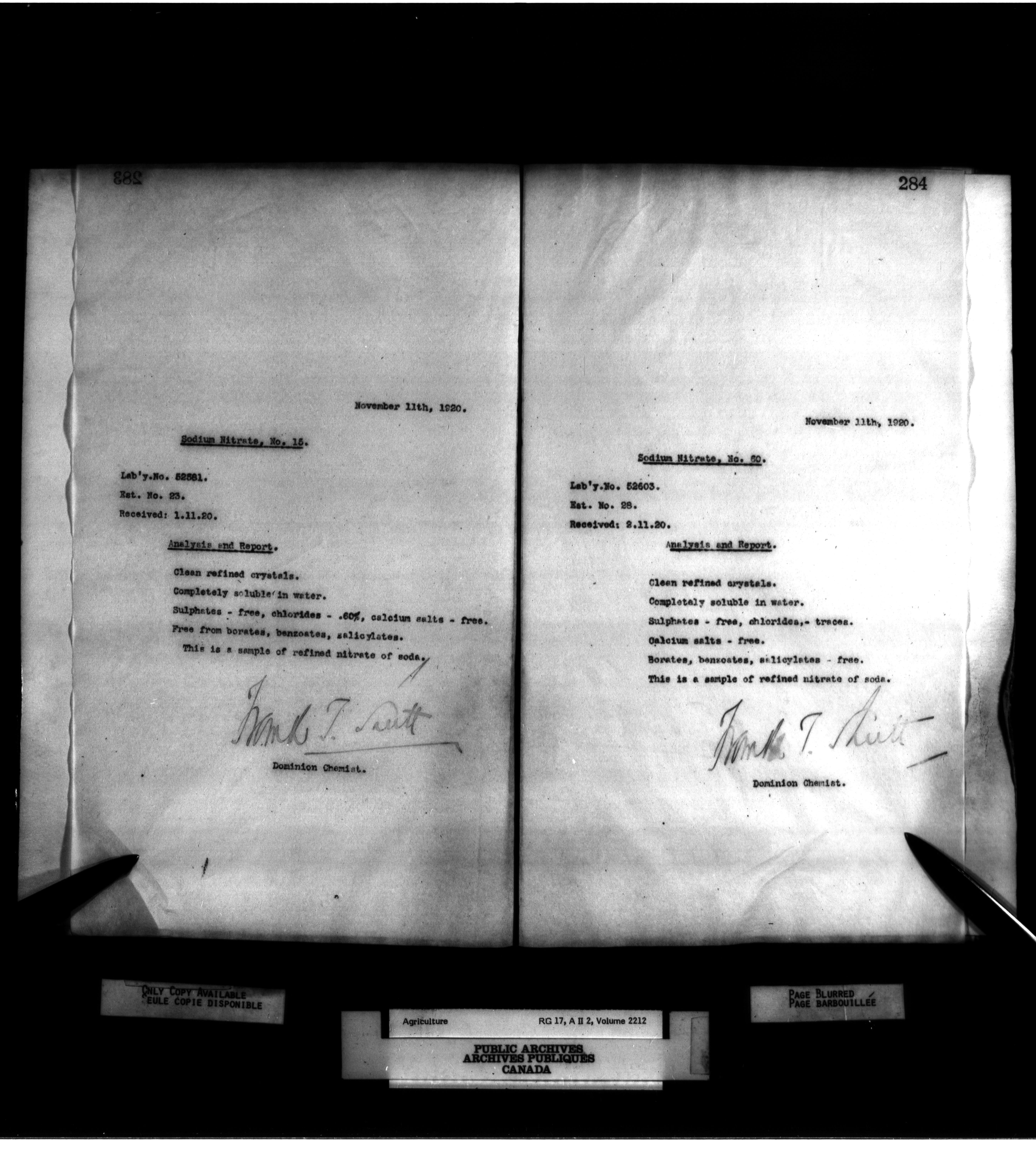 Department of Agriculture, Dominion Chemist : Letterbooks, 1889 - 1933 : T-1094