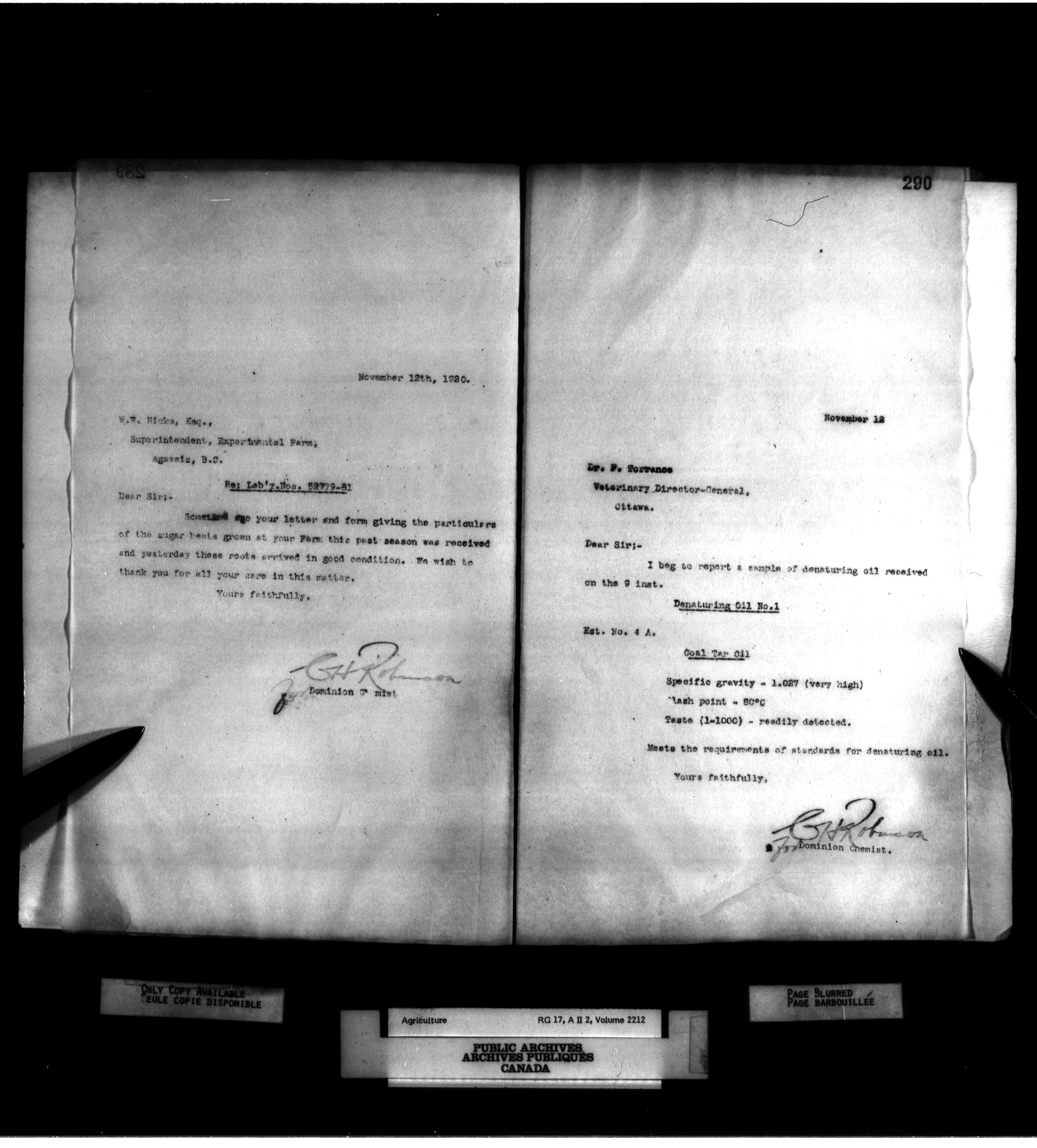 Department of Agriculture, Dominion Chemist : Letterbooks, 1889 - 1933 : T-1094