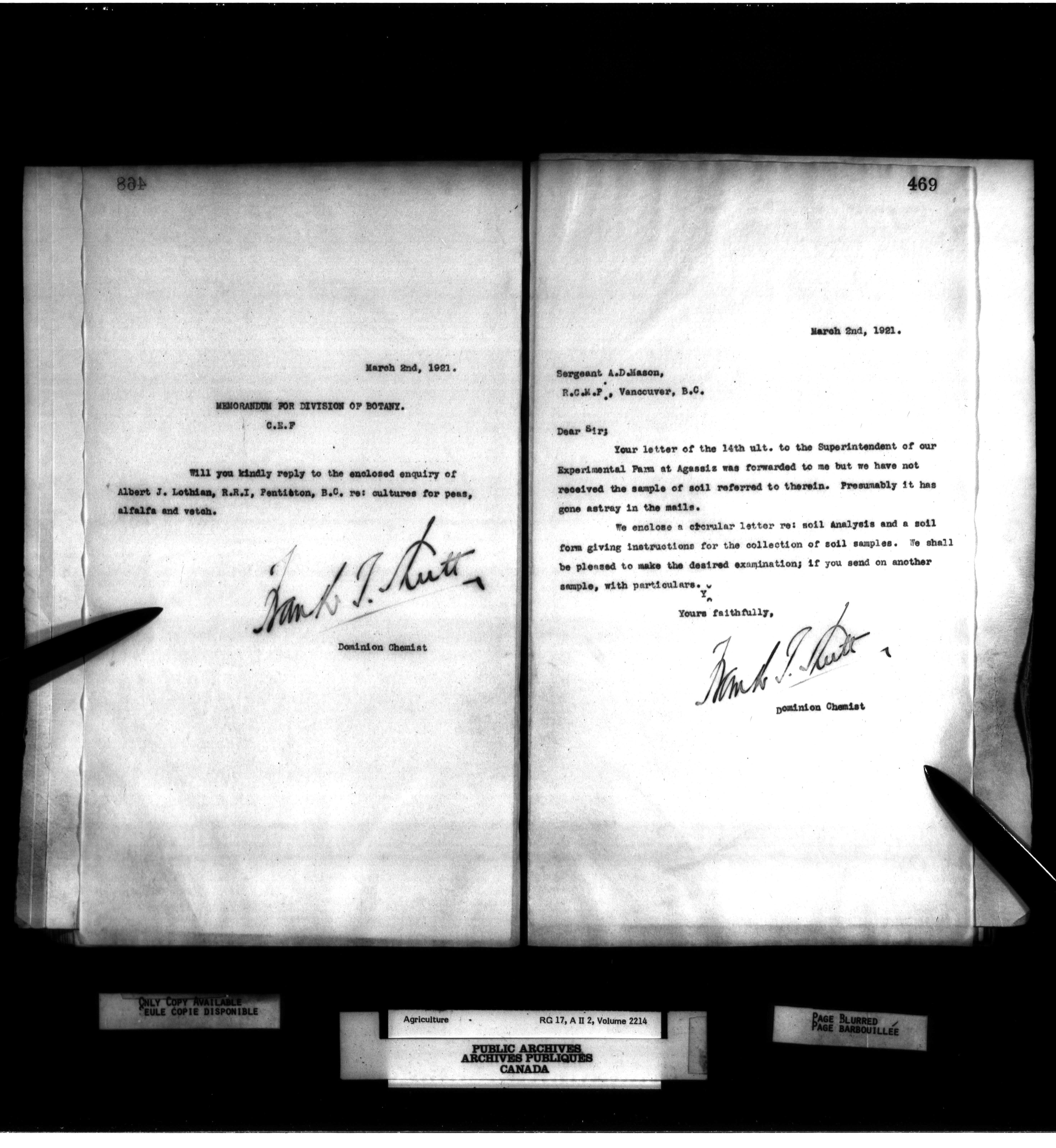 Department of Agriculture, Dominion Chemist : Letterbooks, 1889 - 1933 : T-1094