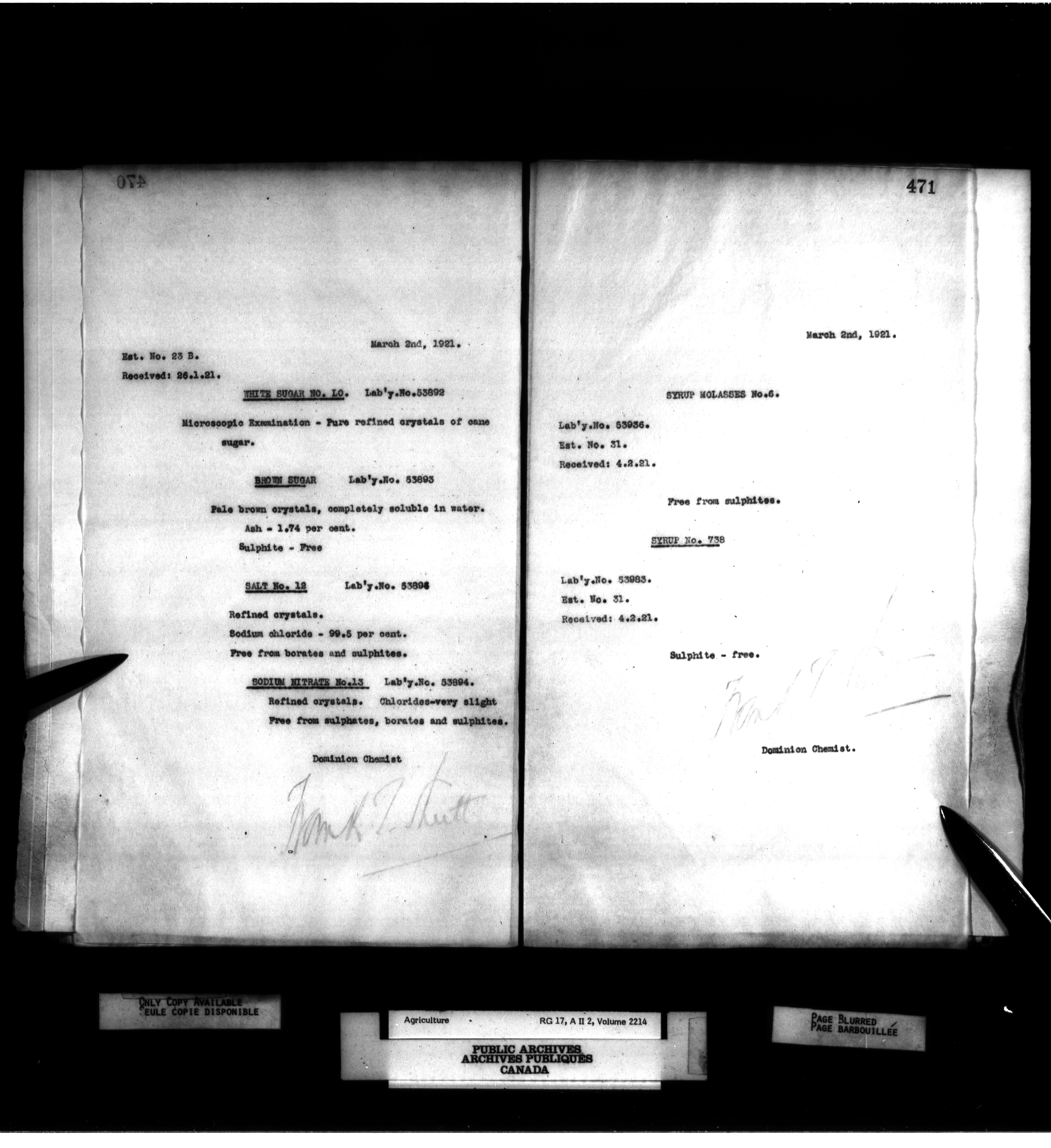 Department of Agriculture, Dominion Chemist : Letterbooks, 1889 - 1933 : T-1094