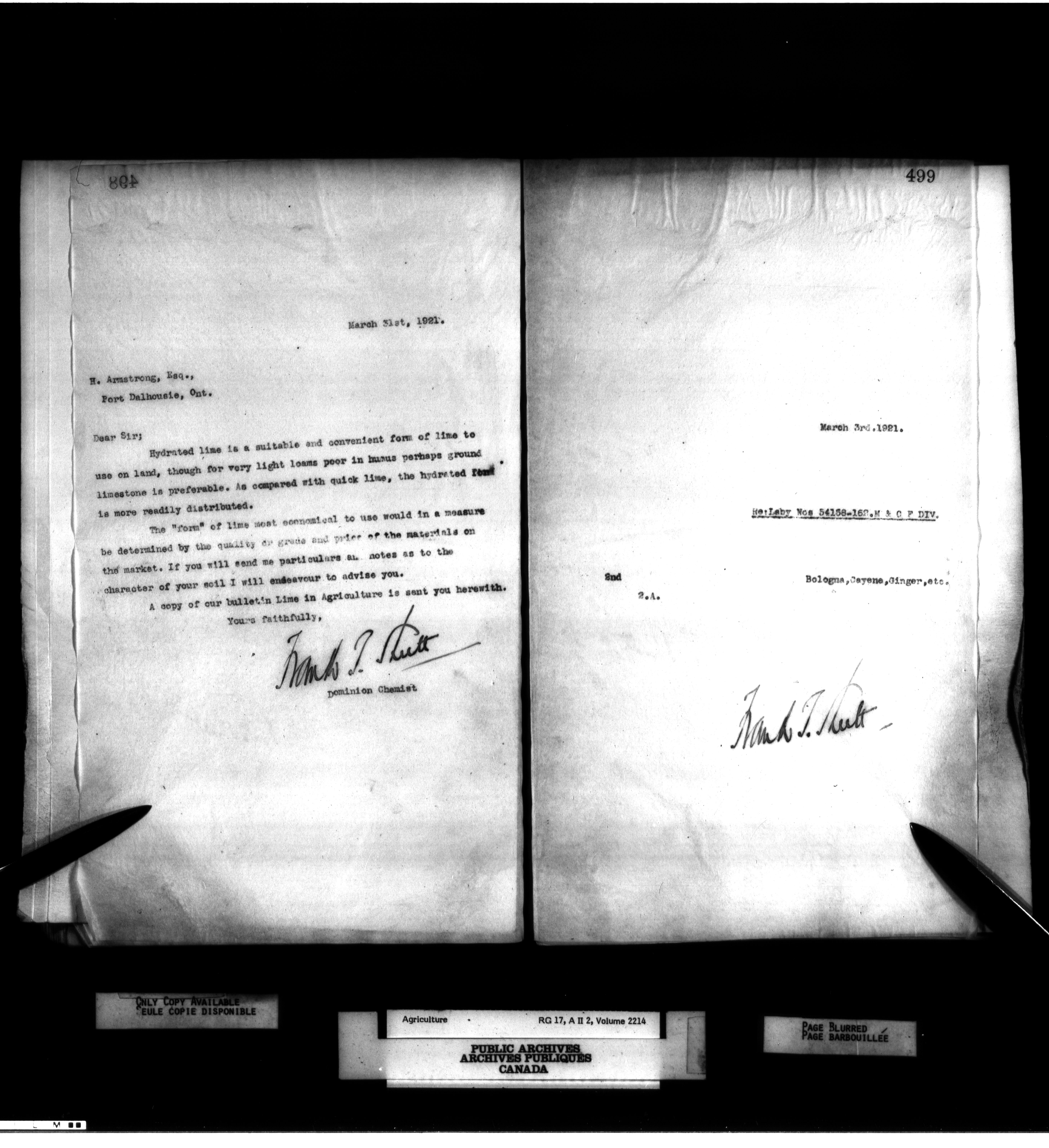 Department of Agriculture, Dominion Chemist : Letterbooks, 1889 - 1933 : T-1094