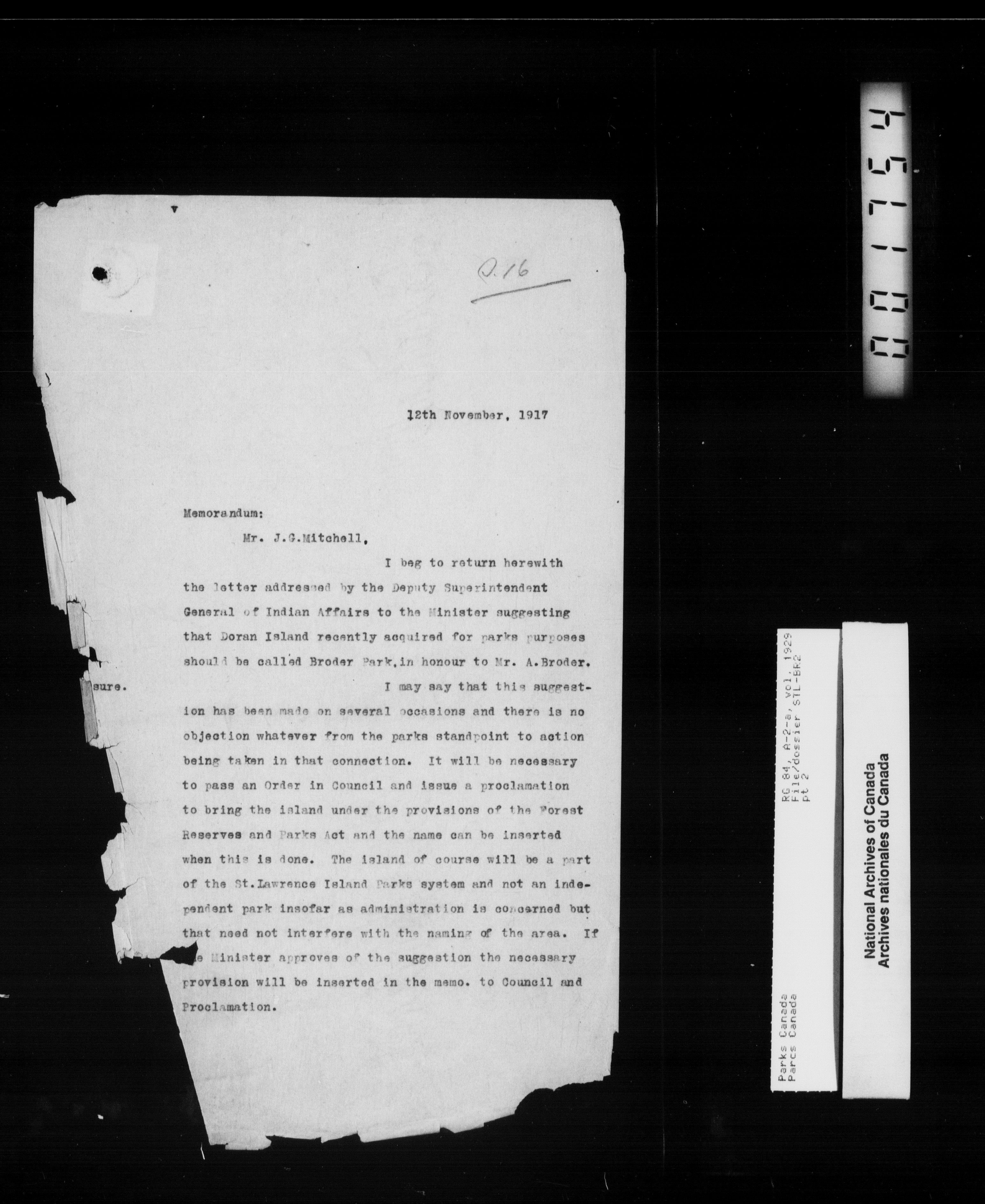 Department of Canadian Heritage, Canadian Parks Service : Park/subject classification system - 10974