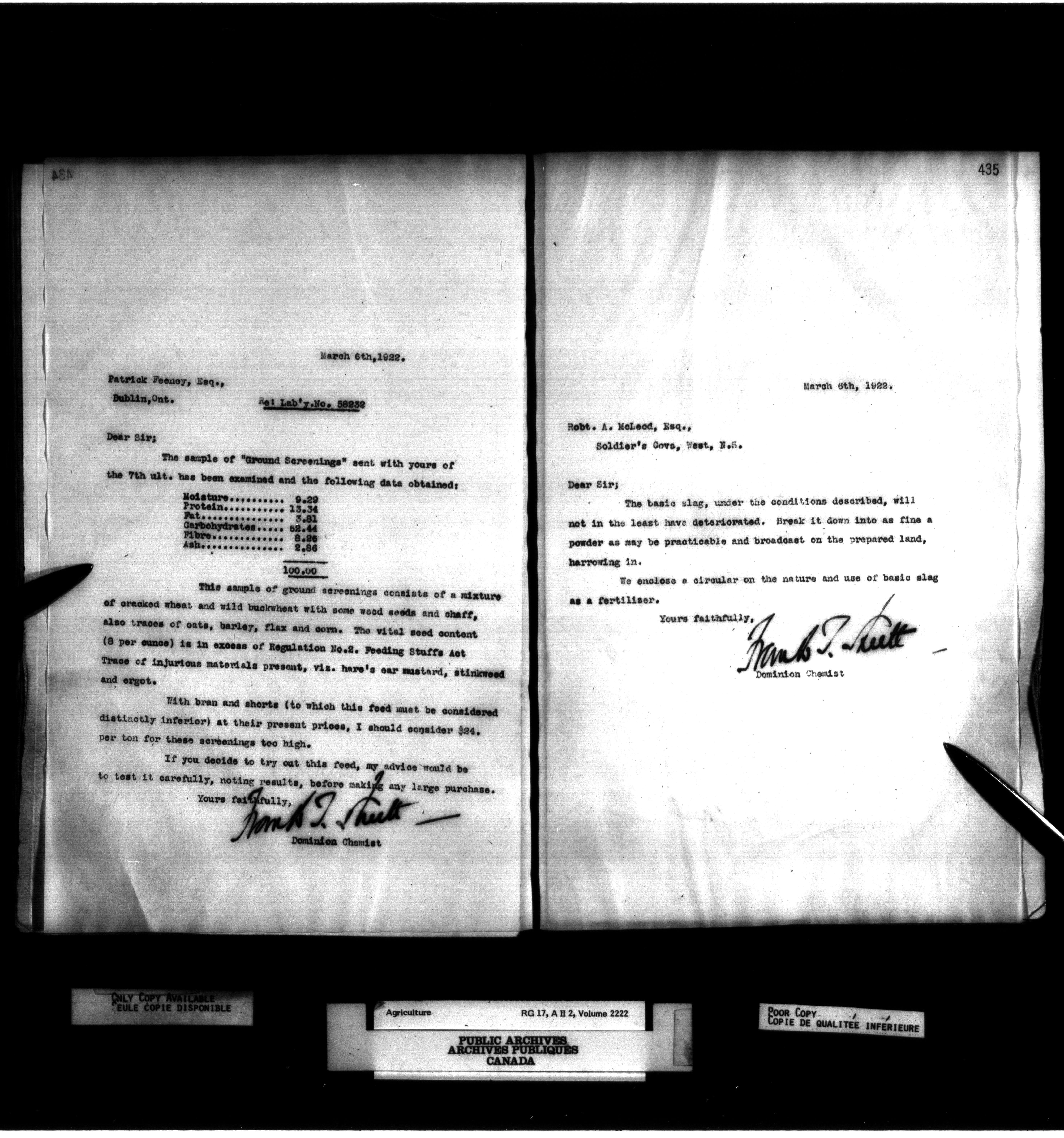 Department of Agriculture, Dominion Chemist : Letterbooks, 1889 - 1933 : T-1098