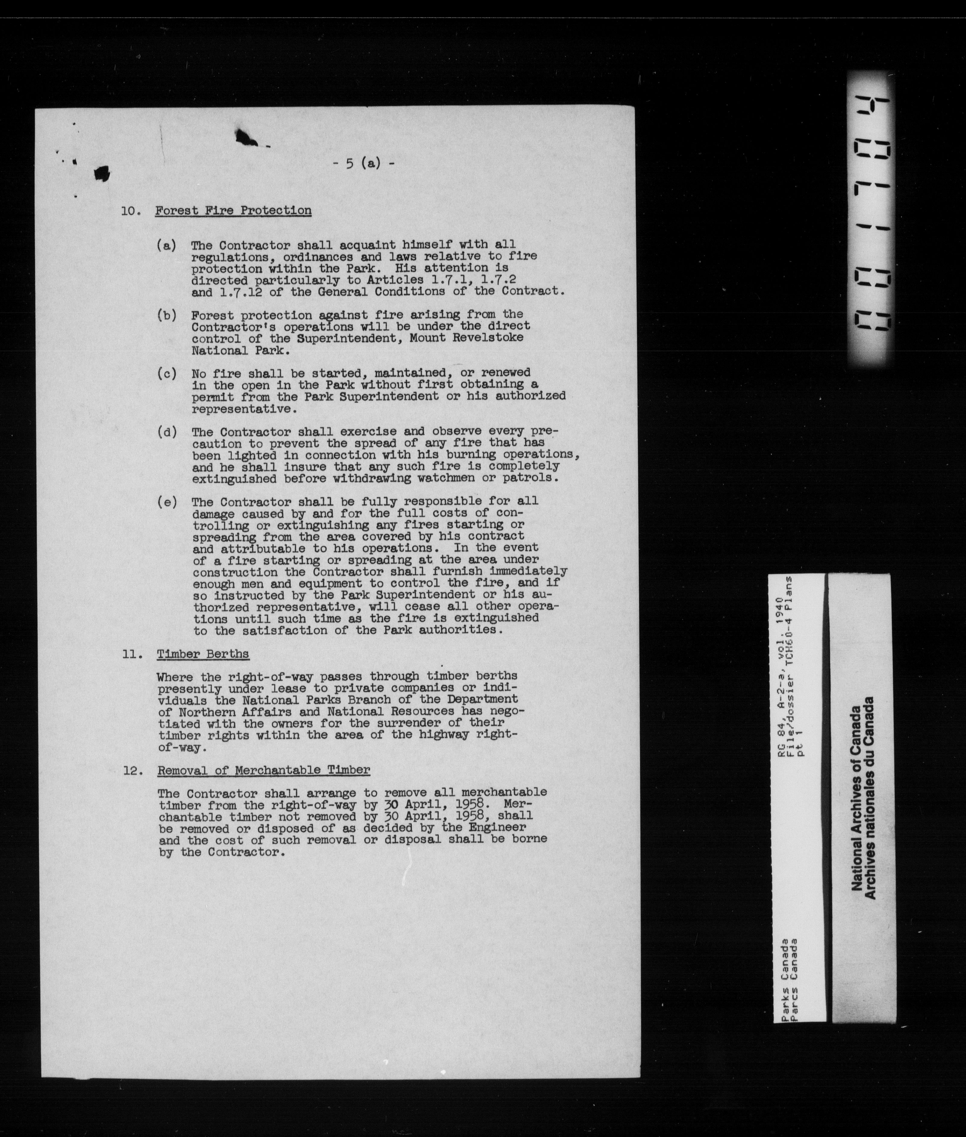 Department of Canadian Heritage, Canadian Parks Service : Park/subject classification system - 10983