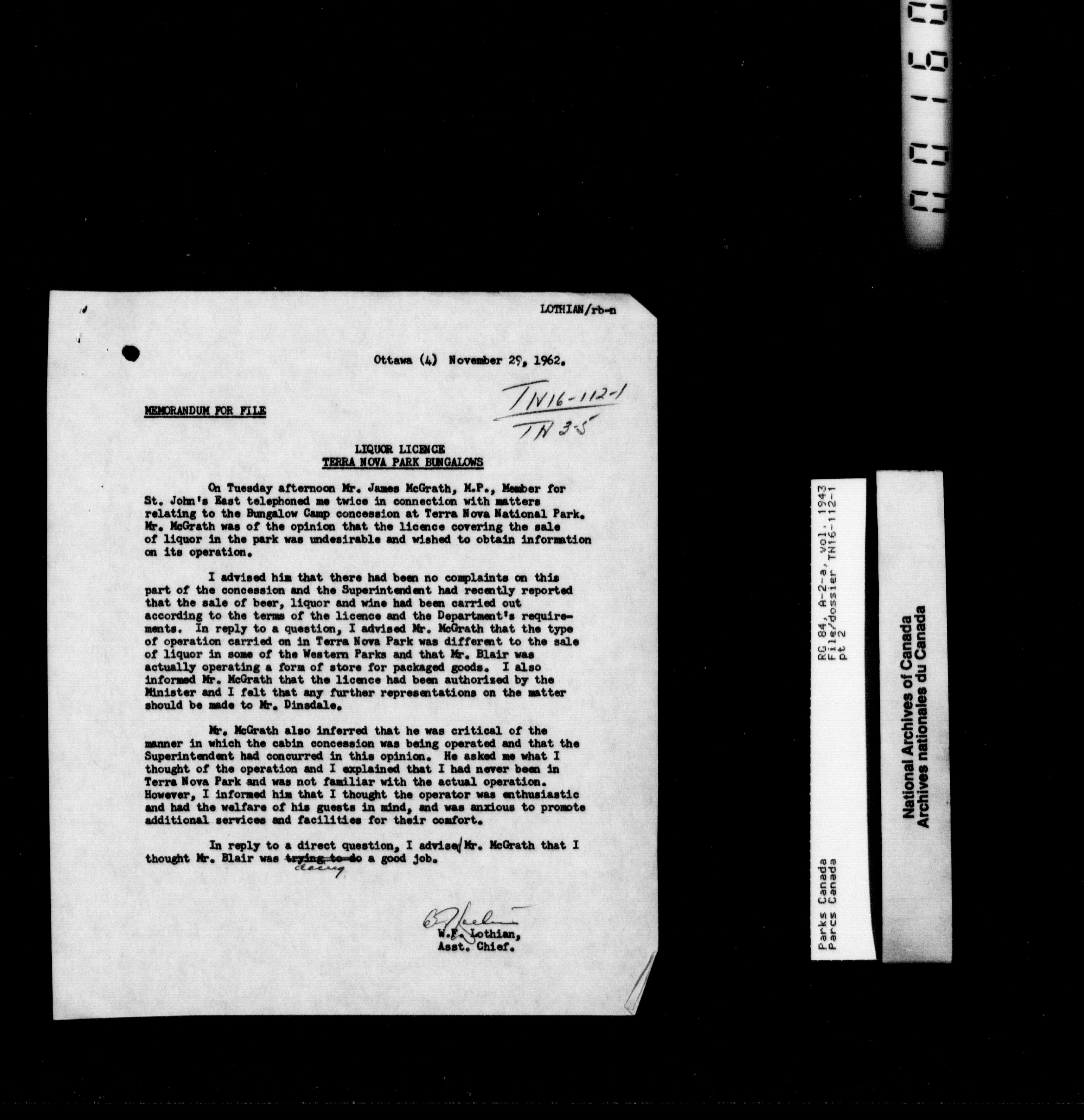 Department of Canadian Heritage, Canadian Parks Service : Park/subject classification system : T-10986