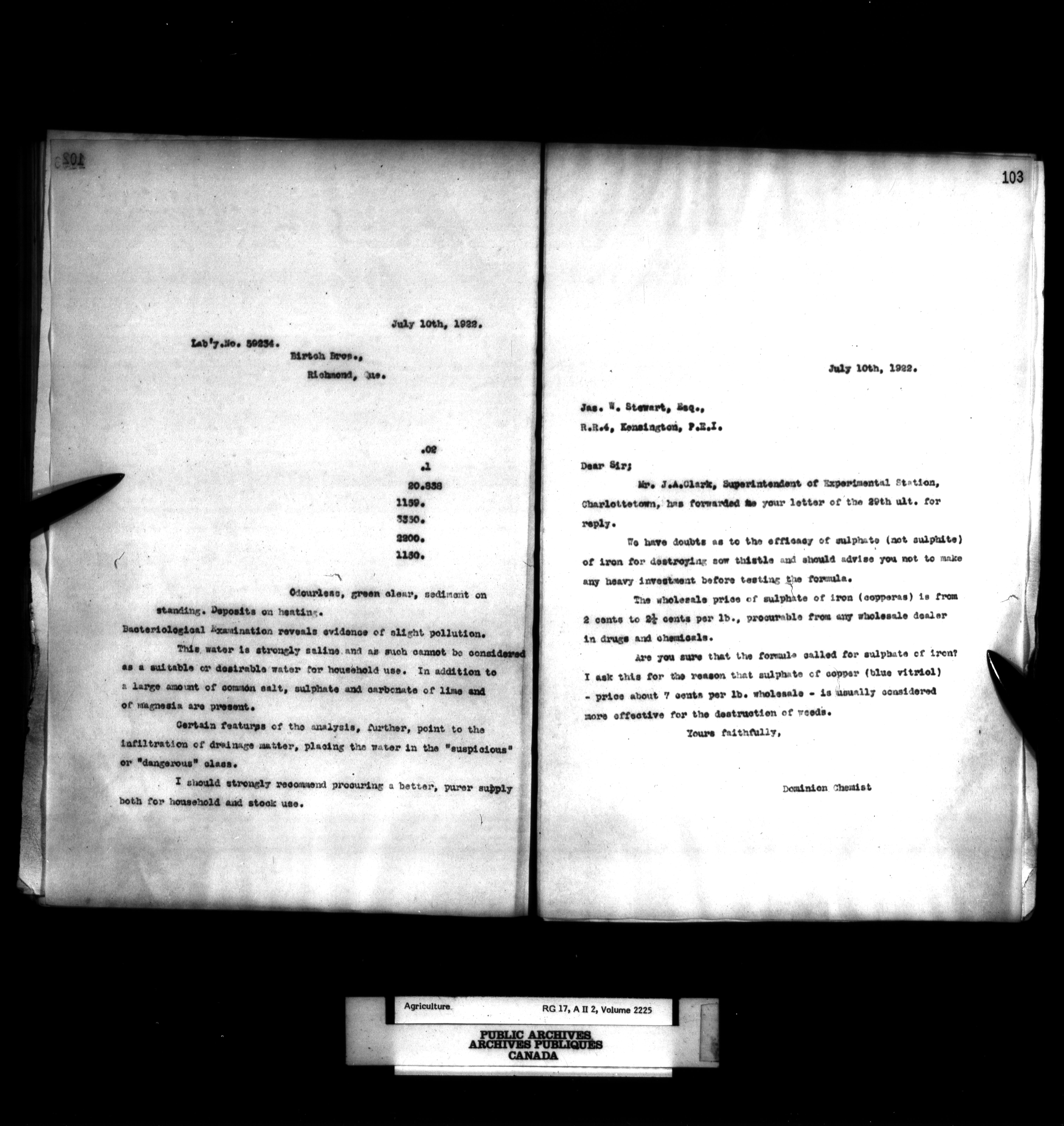 Department of Agriculture : Dominion Chemist, letterbooks - 1099