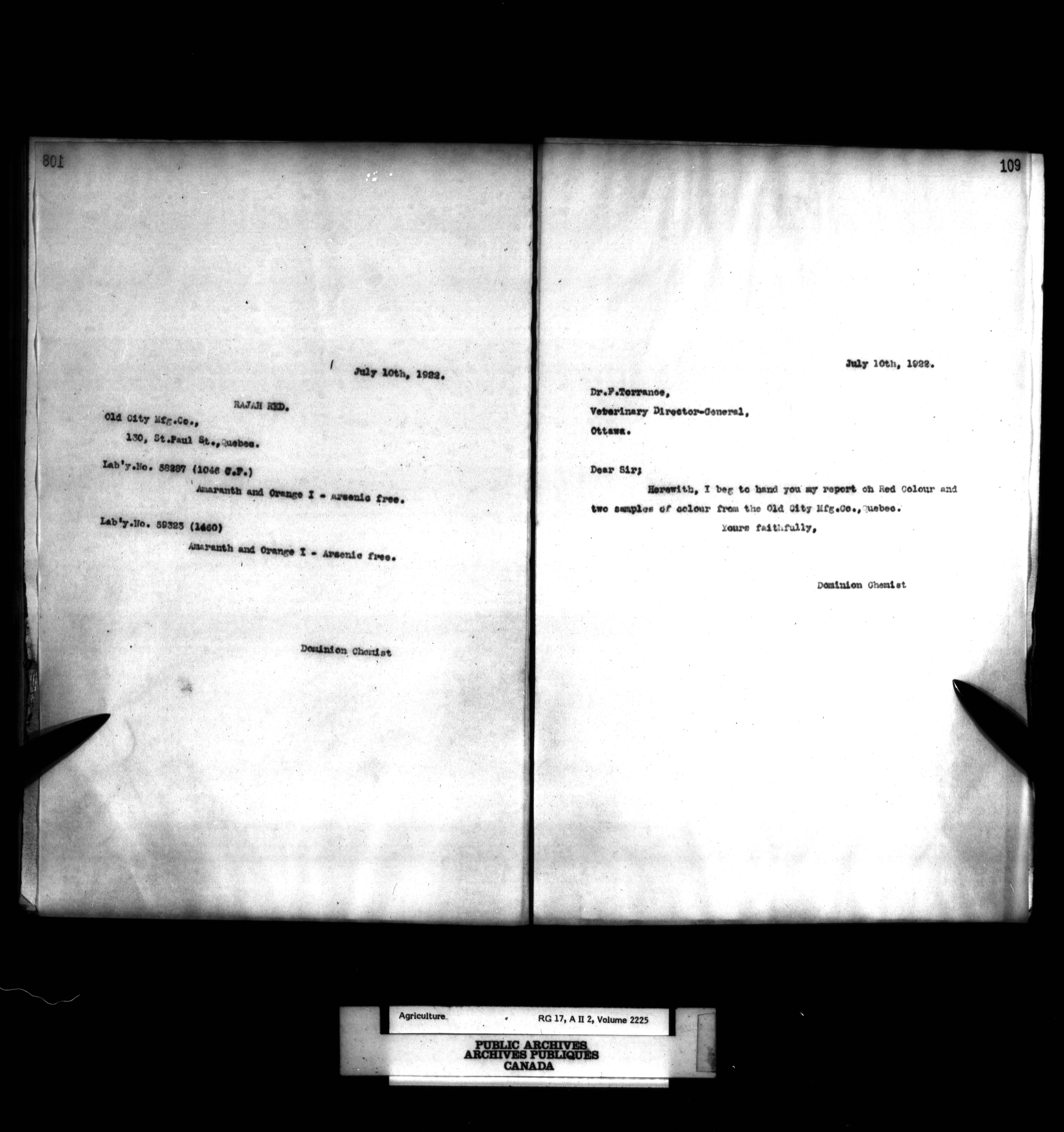 Department of Agriculture, Dominion Chemist : Letterbooks, 1889 - 1933 : T-1099