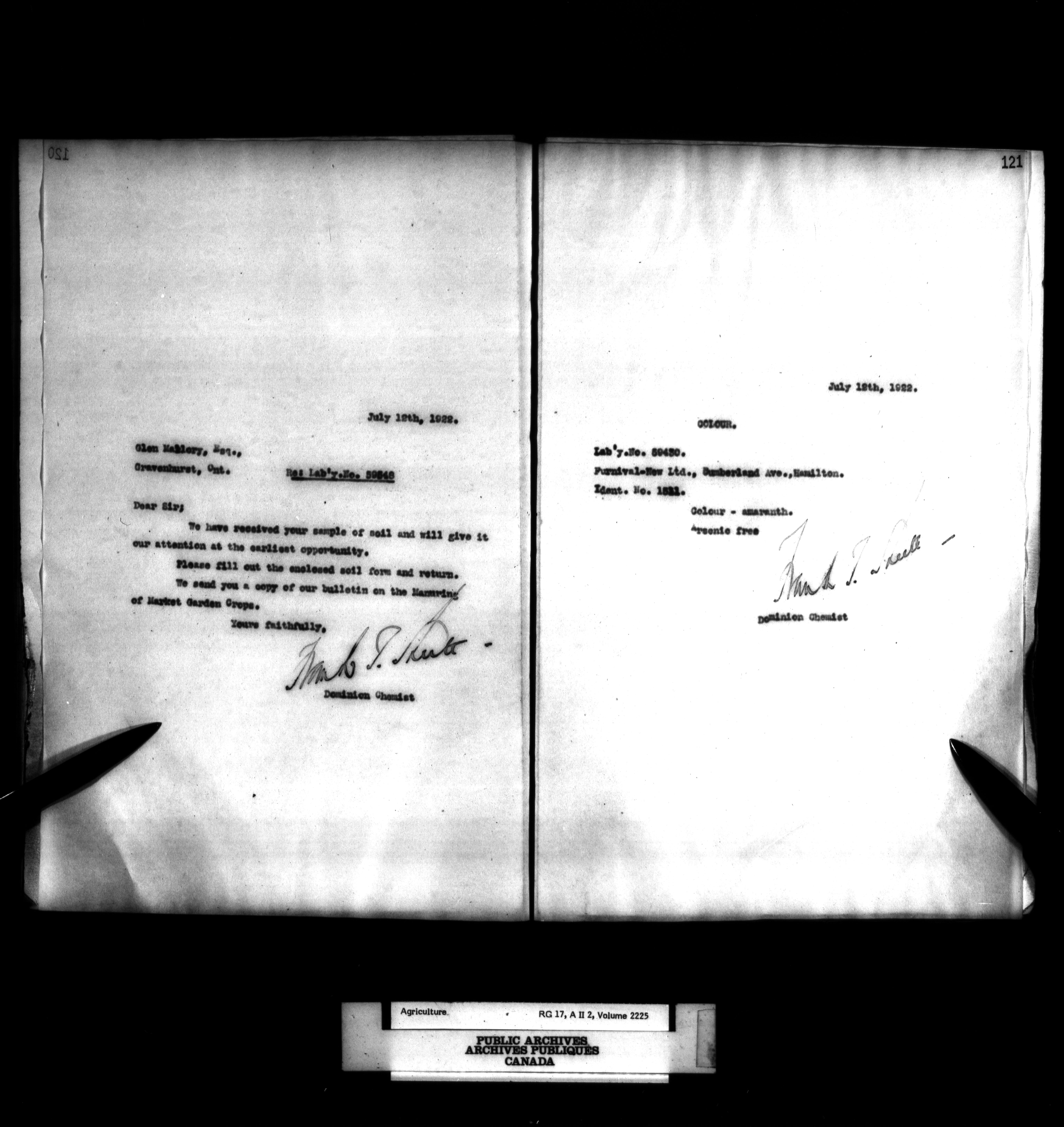 Department of Agriculture : Dominion Chemist, letterbooks - 1099