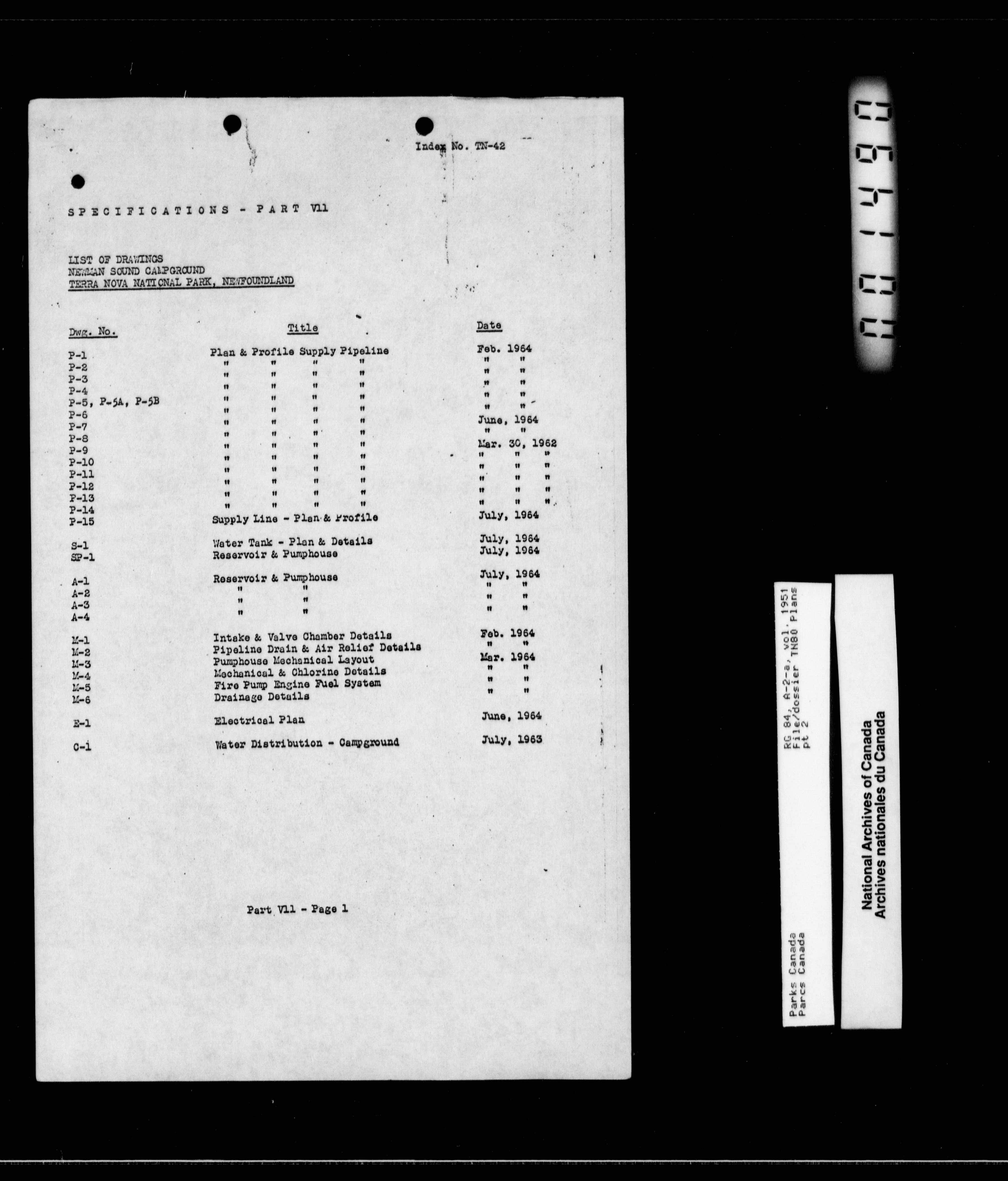 Department of Canadian Heritage, Canadian Parks Service : Park/subject classification system : T-10991