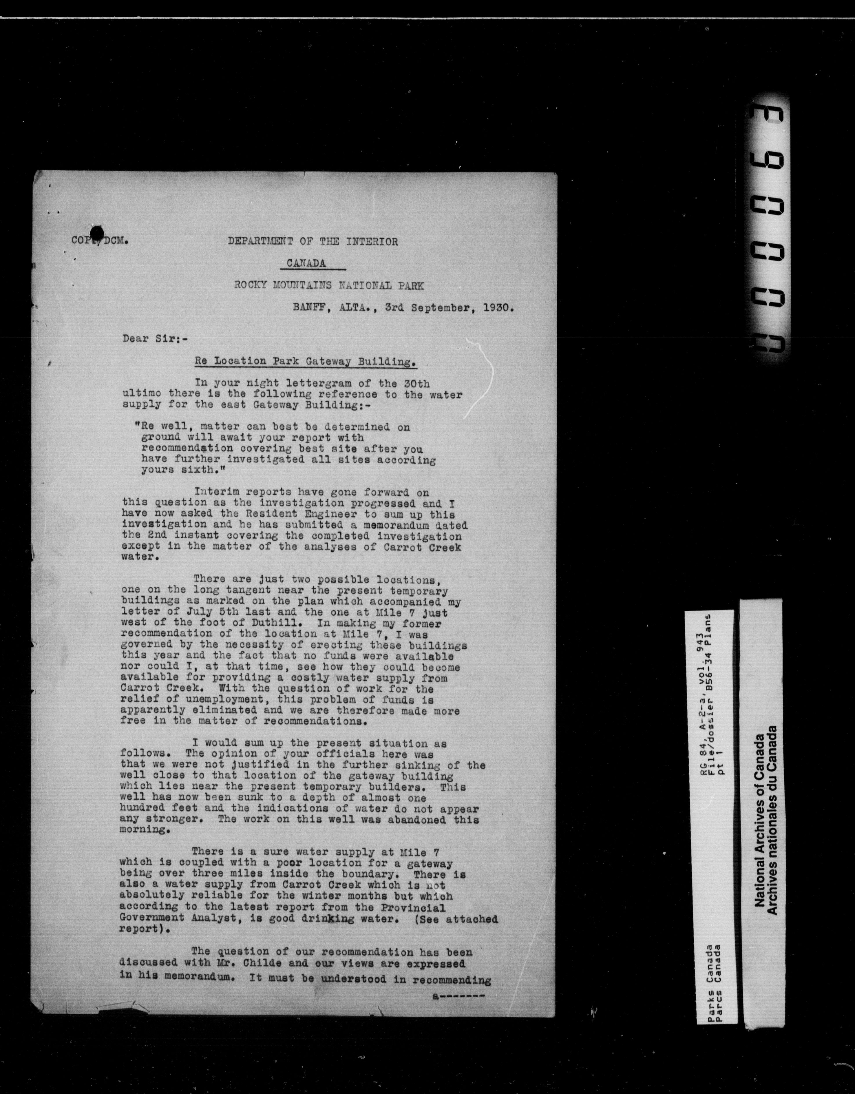 Department of Canadian Heritage, Canadian Parks Service : Park/subject classification system - 11010