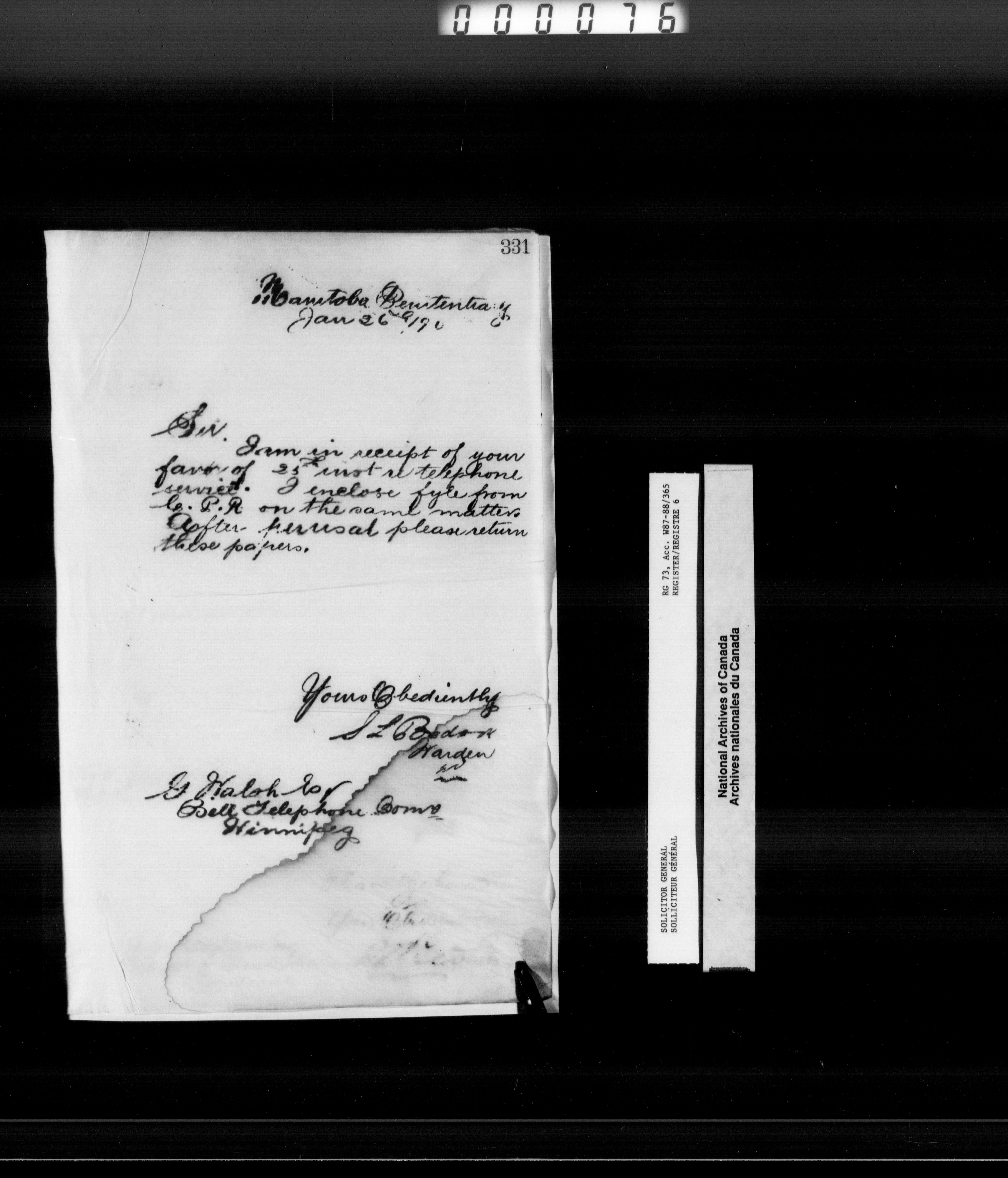 Correctional Service of Canada : Stony Mountain Penitentiary, Winnipeg, Manitoba, 1872-1921 - 11084