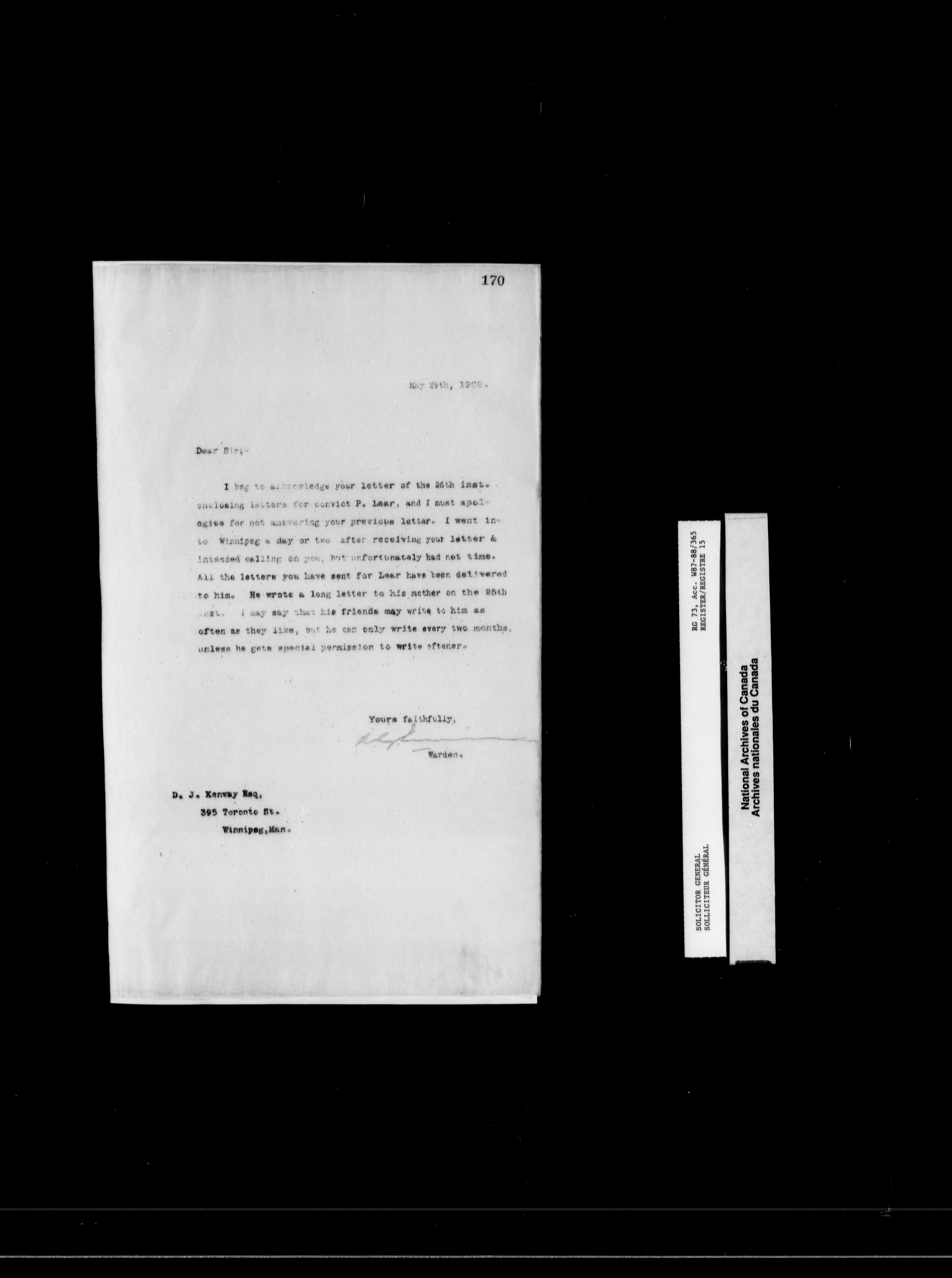 Correctional Service of Canada : Stony Mountain Penitentiary, Winnipeg, Manitoba, 1872-1921 - 11092