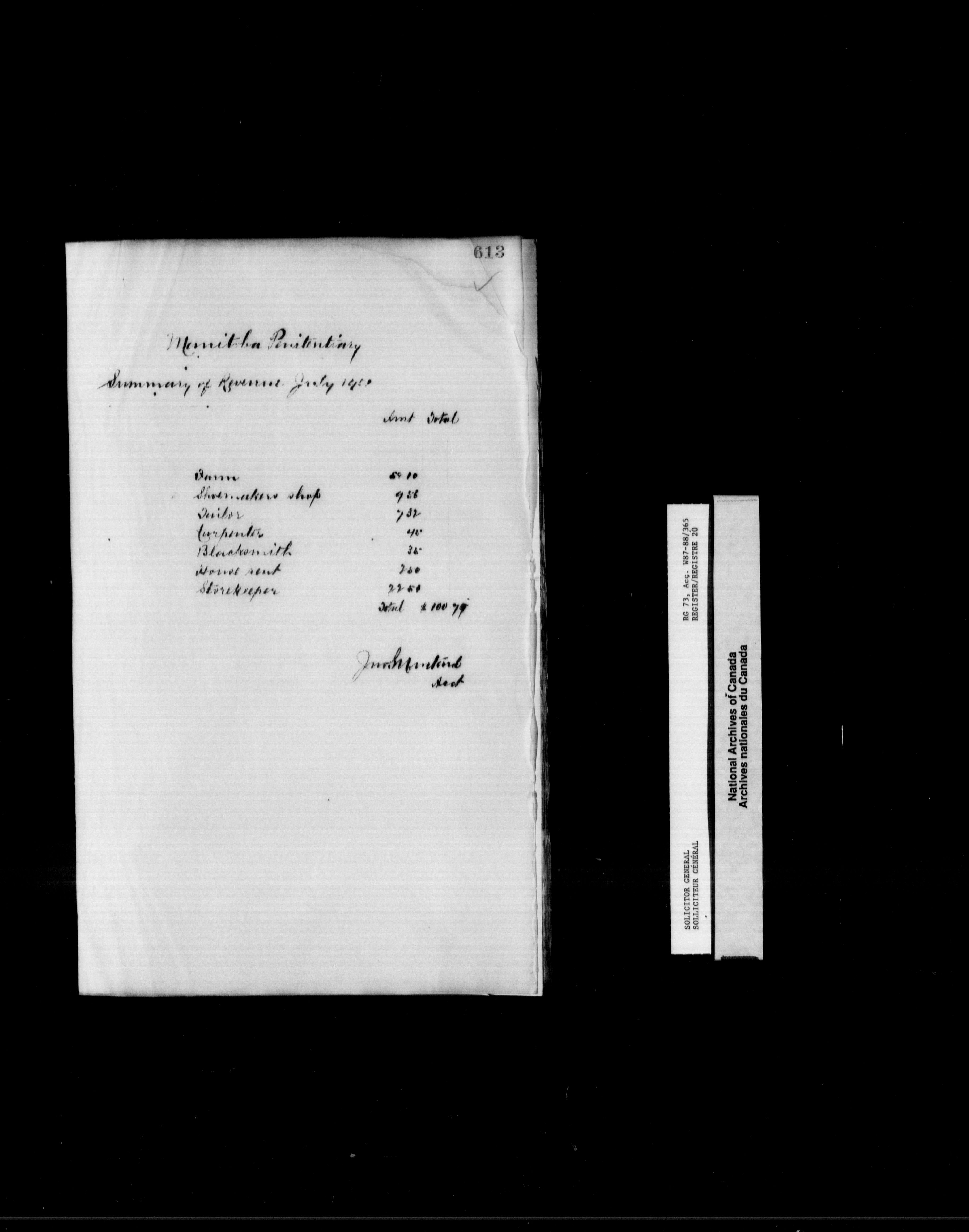 Correctional Service of Canada : Stony Mountain Penitentiary, Winnipeg, Manitoba, 1872-1921 - 11094