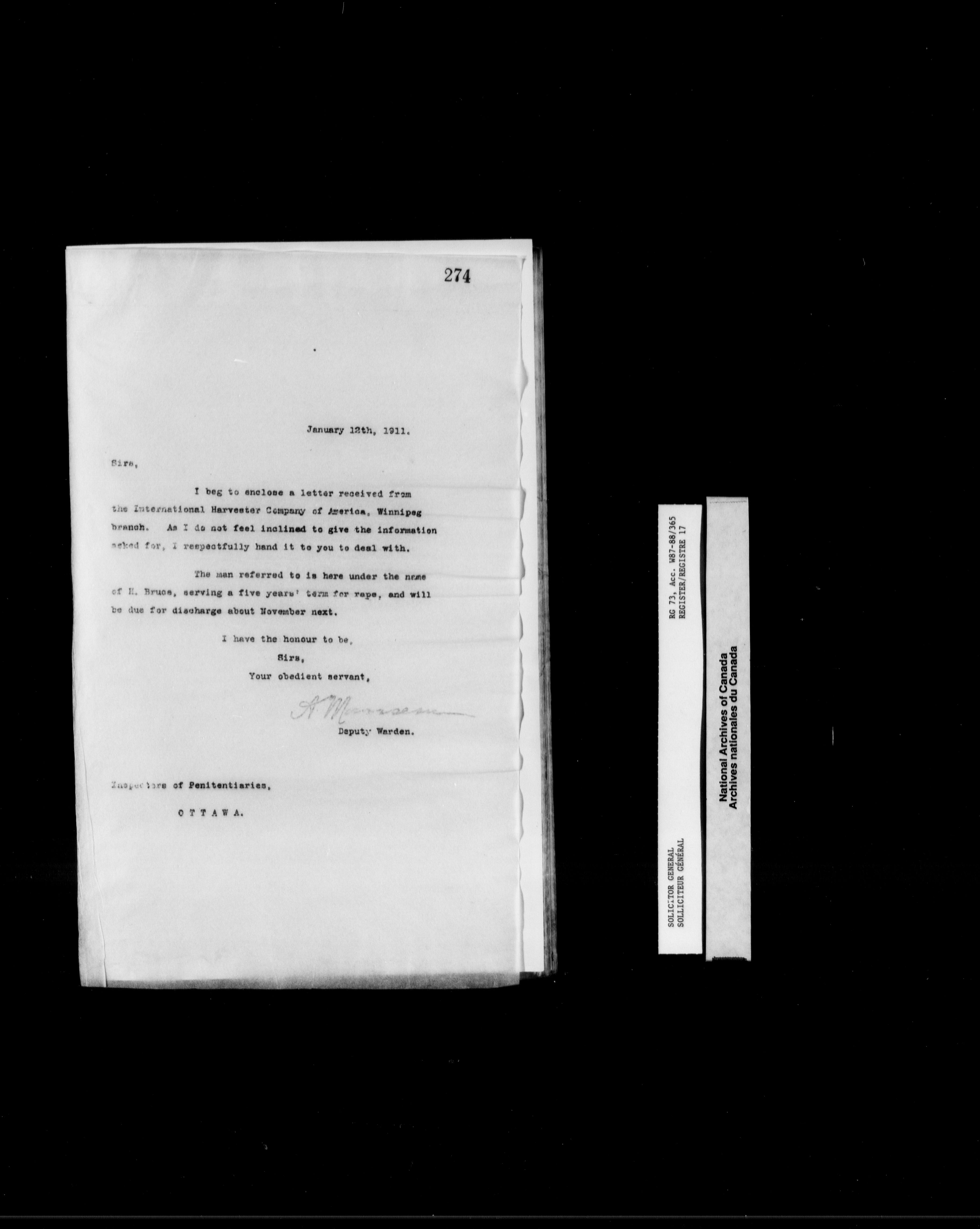 Correctional Service of Canada : Stony Mountain Penitentiary, Winnipeg, Manitoba, 1872-1921 - 11094