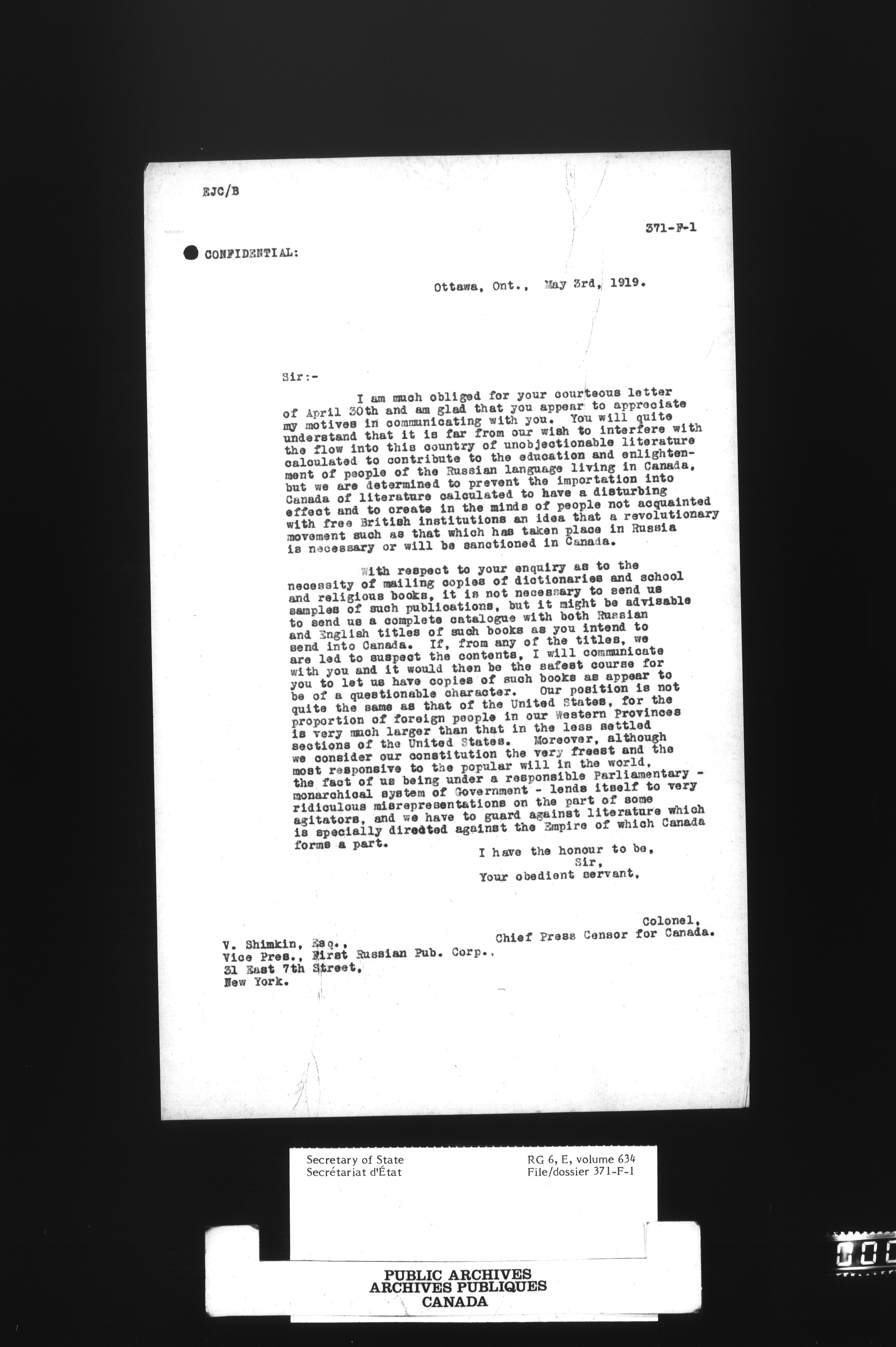 Secretary of State : Chief Press Censor, 1915-1920 - 111