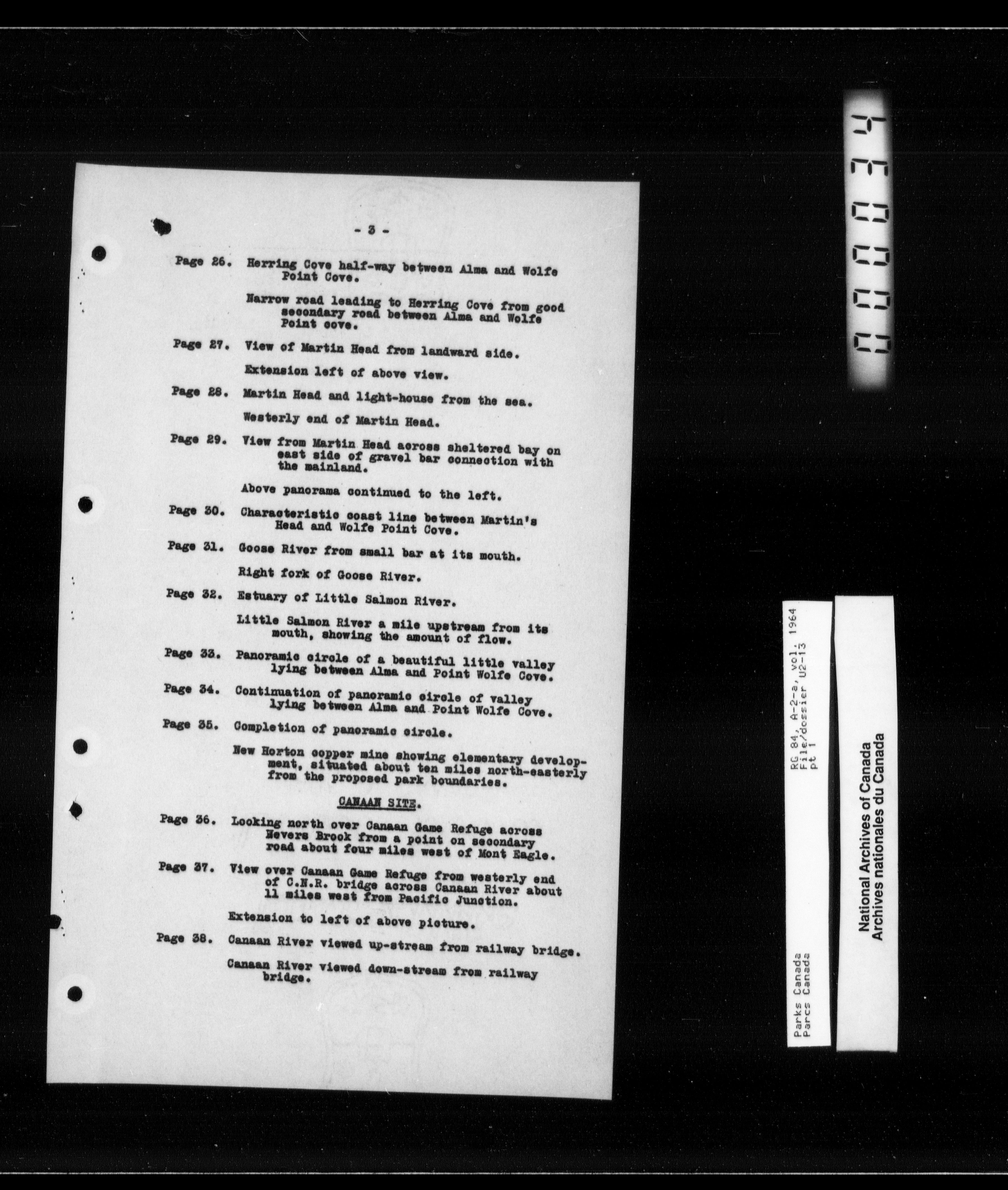 Department of Canadian Heritage, Canadian Parks Service : Park/subject classification system - 11101