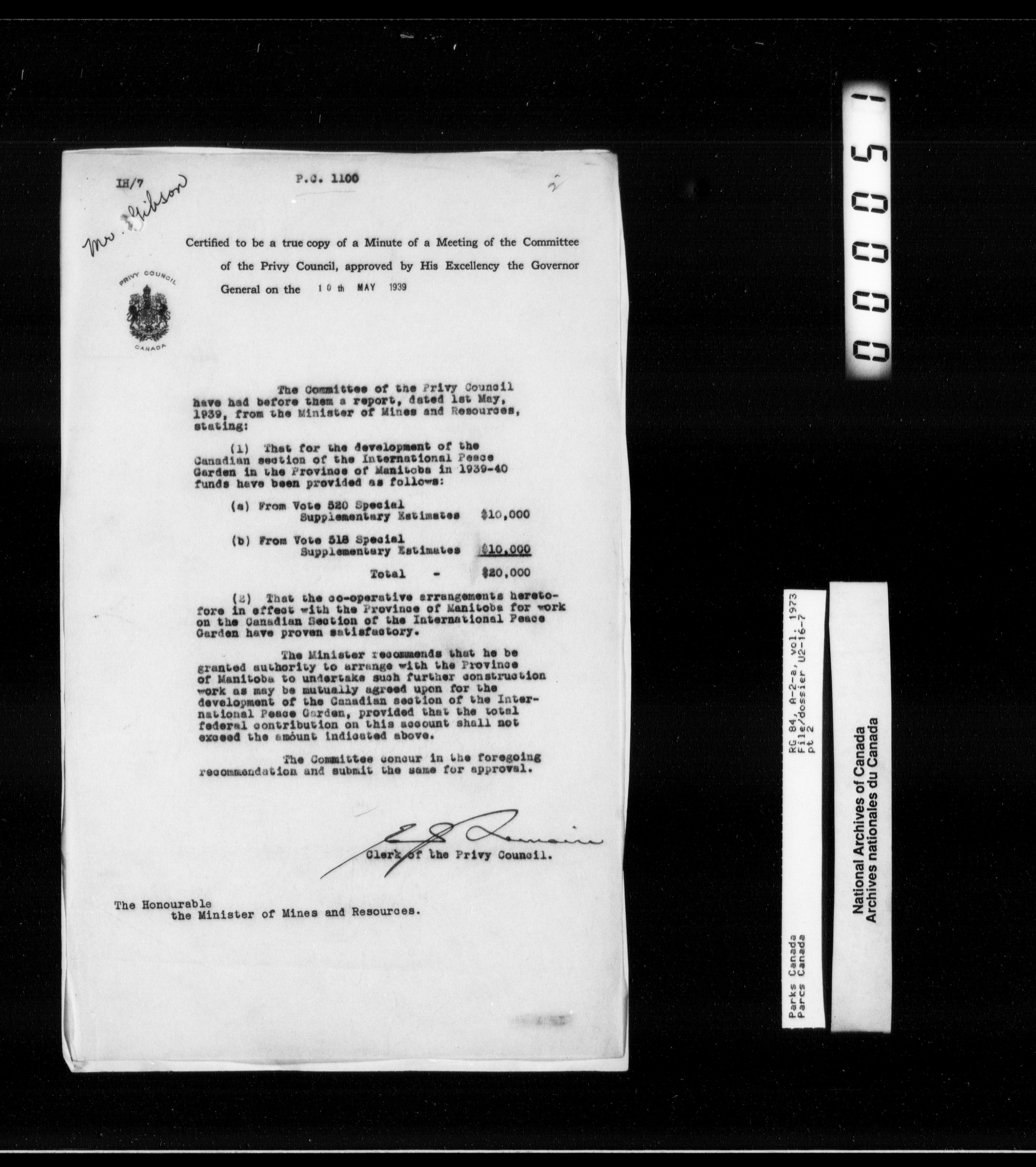 Department of Canadian Heritage, Canadian Parks Service : Park/subject classification system - 11109
