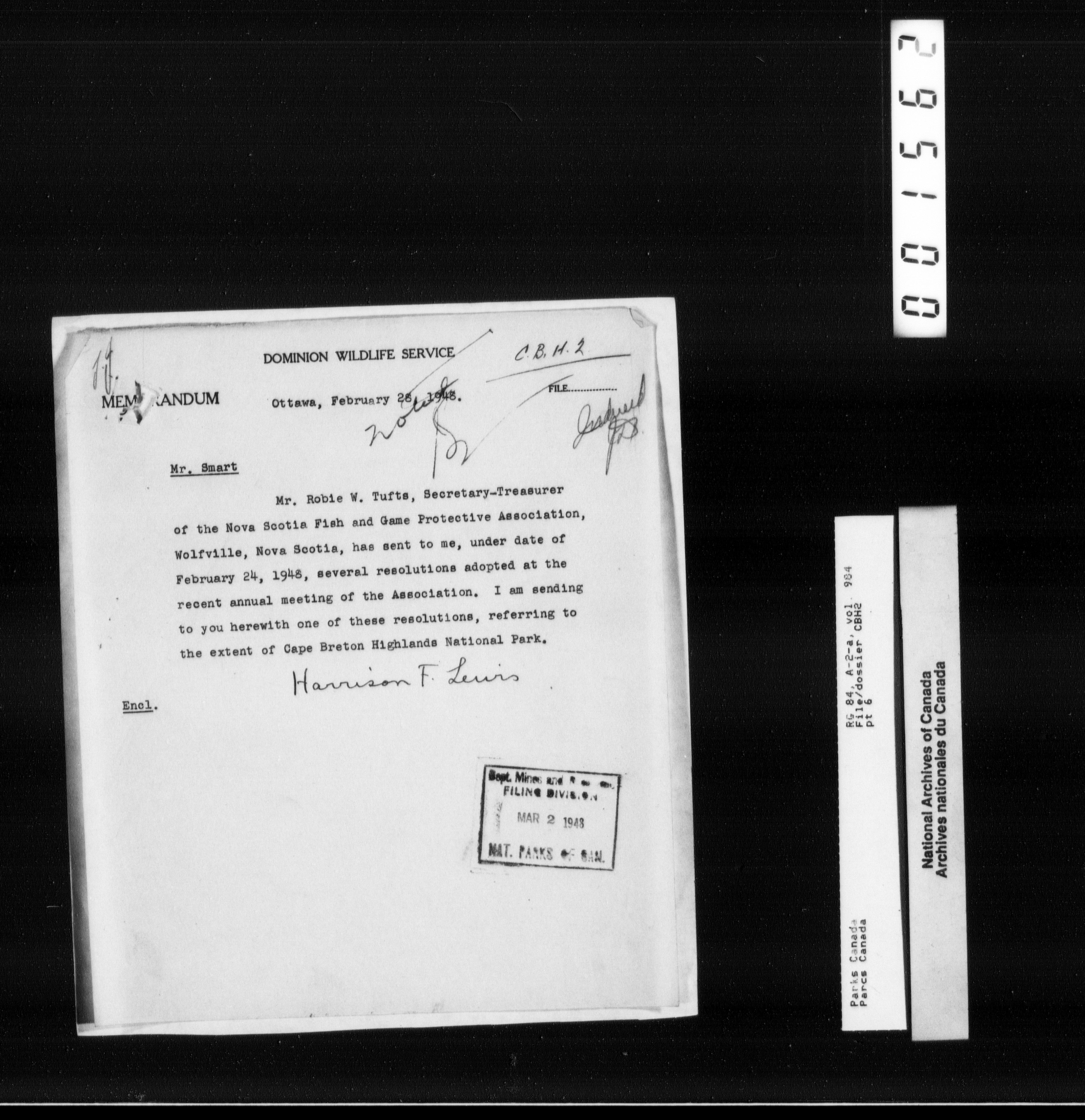 Department of Canadian Heritage, Canadian Parks Service : Park/subject classification system - 11116
