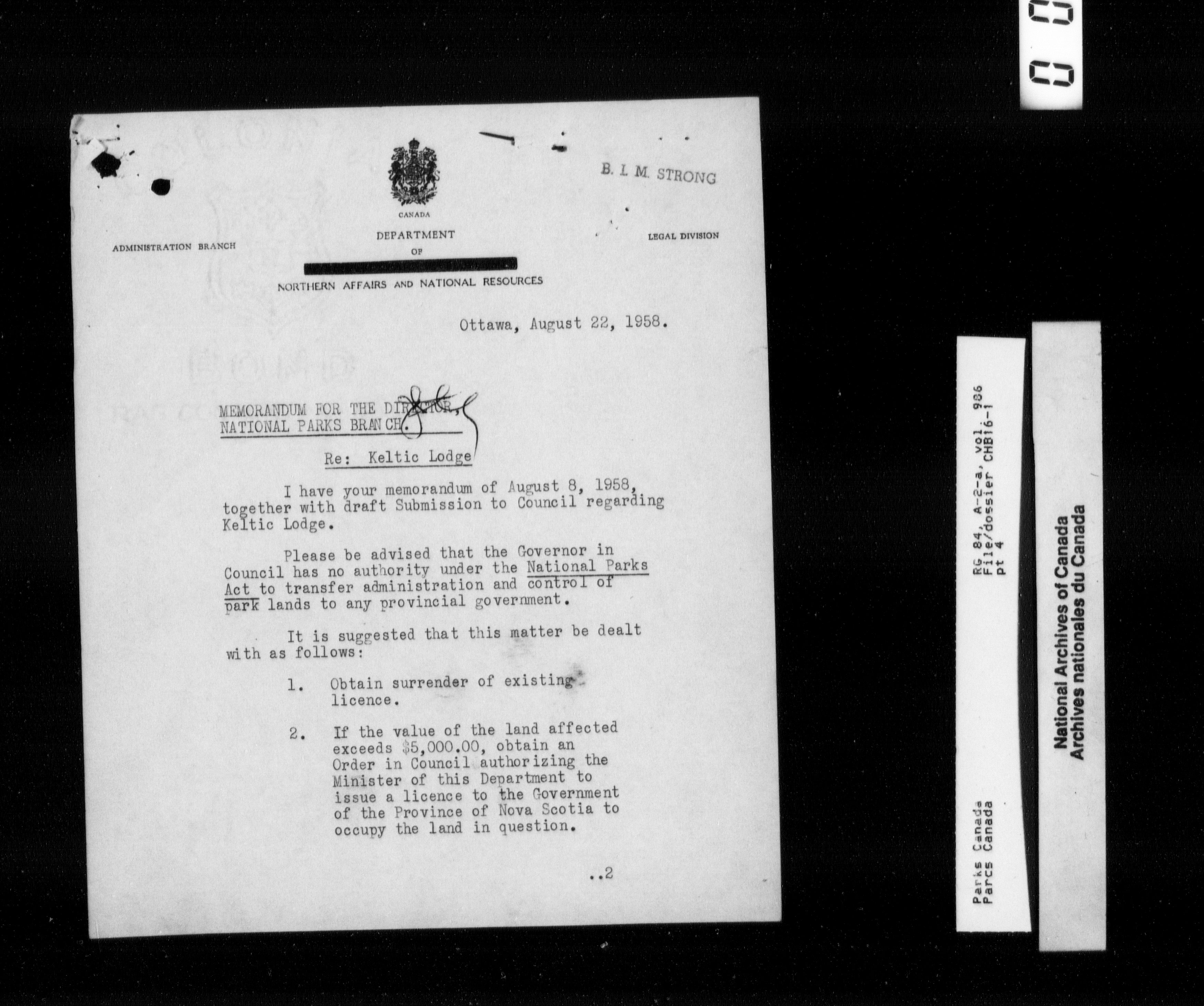 Department of Canadian Heritage, Canadian Parks Service : Park/subject classification system - 11118