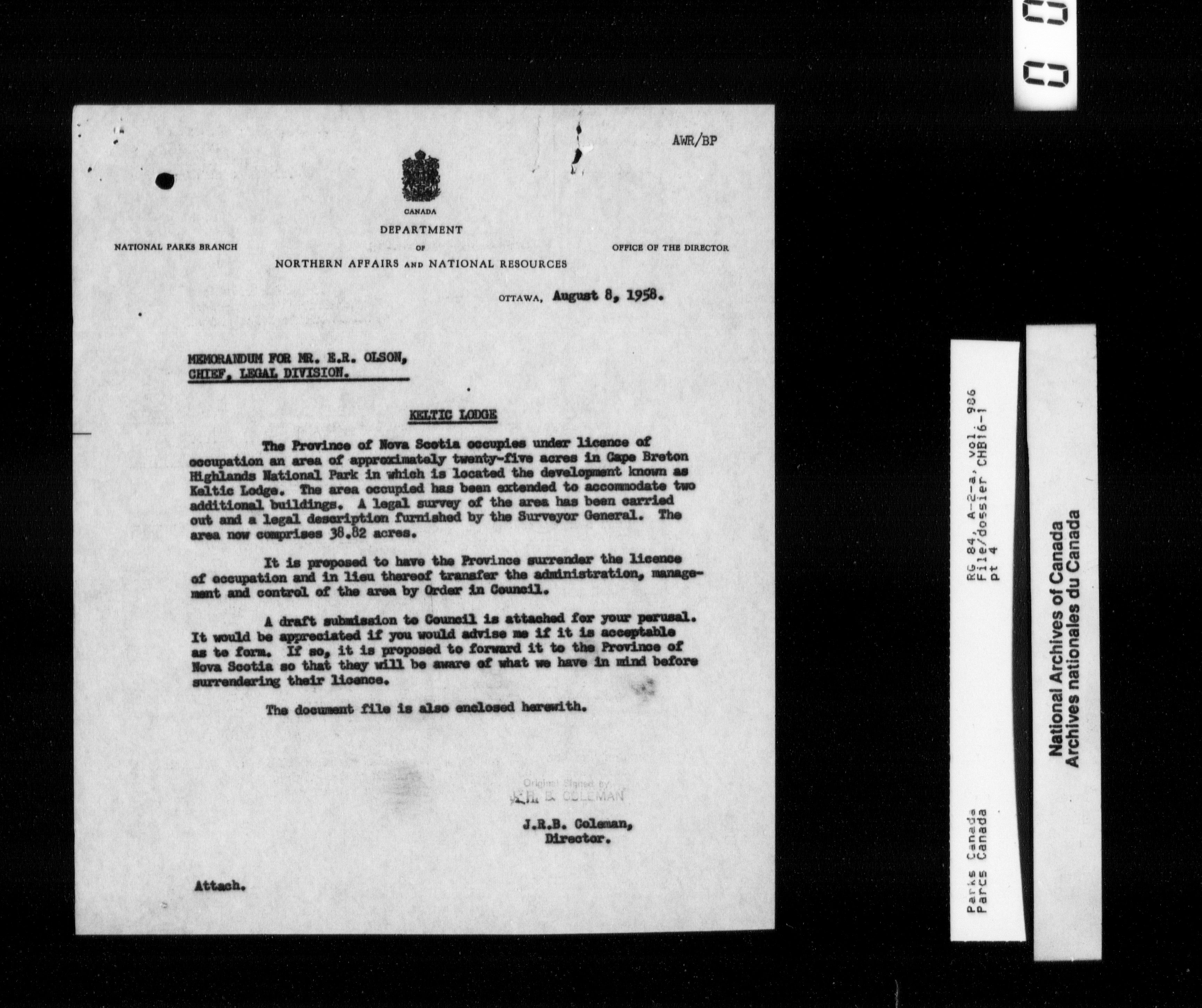 Department of Canadian Heritage, Canadian Parks Service : Park/subject classification system - 11118