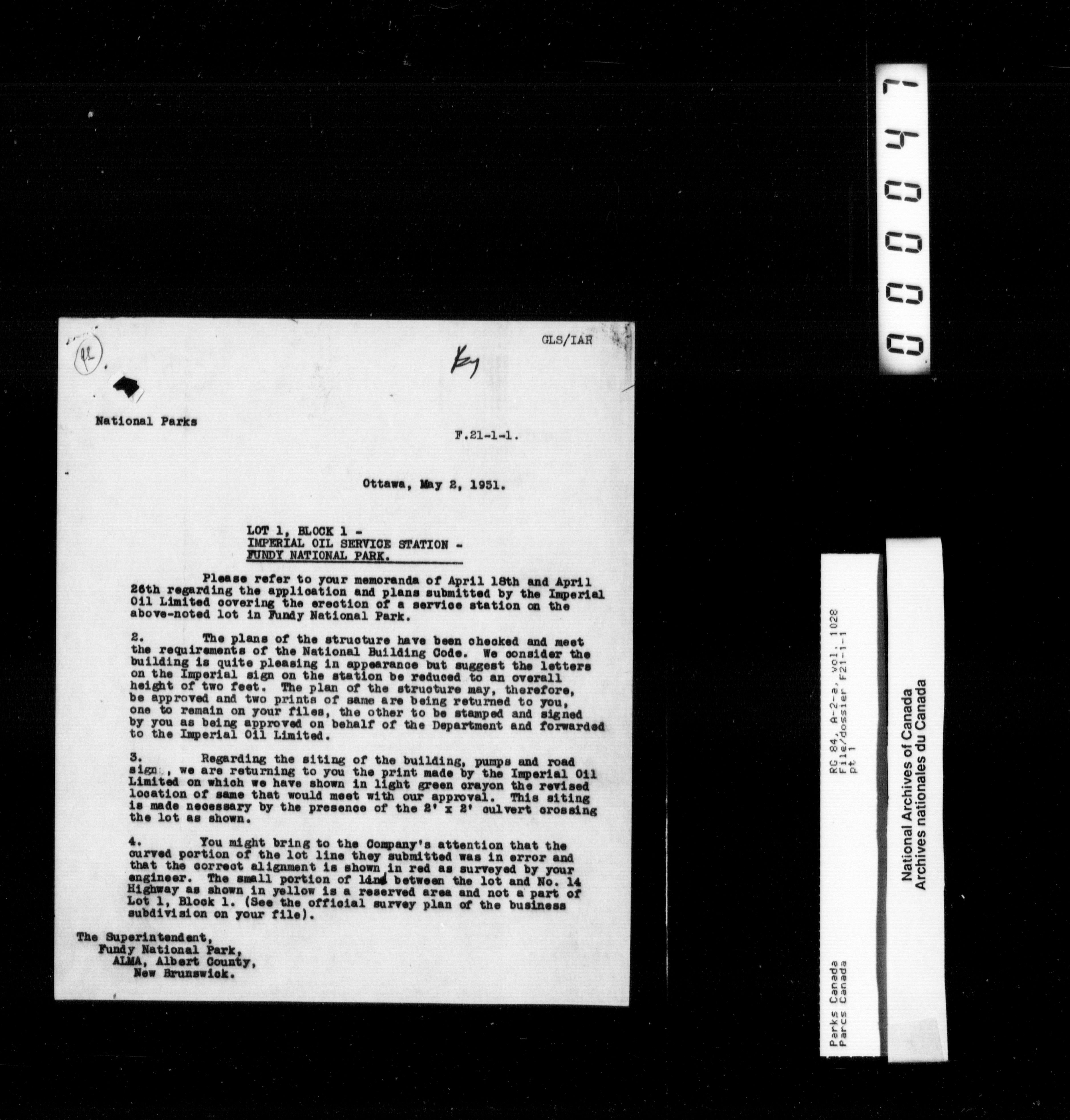Department of Canadian Heritage, Canadian Parks Service : Park/subject classification system : T-11223