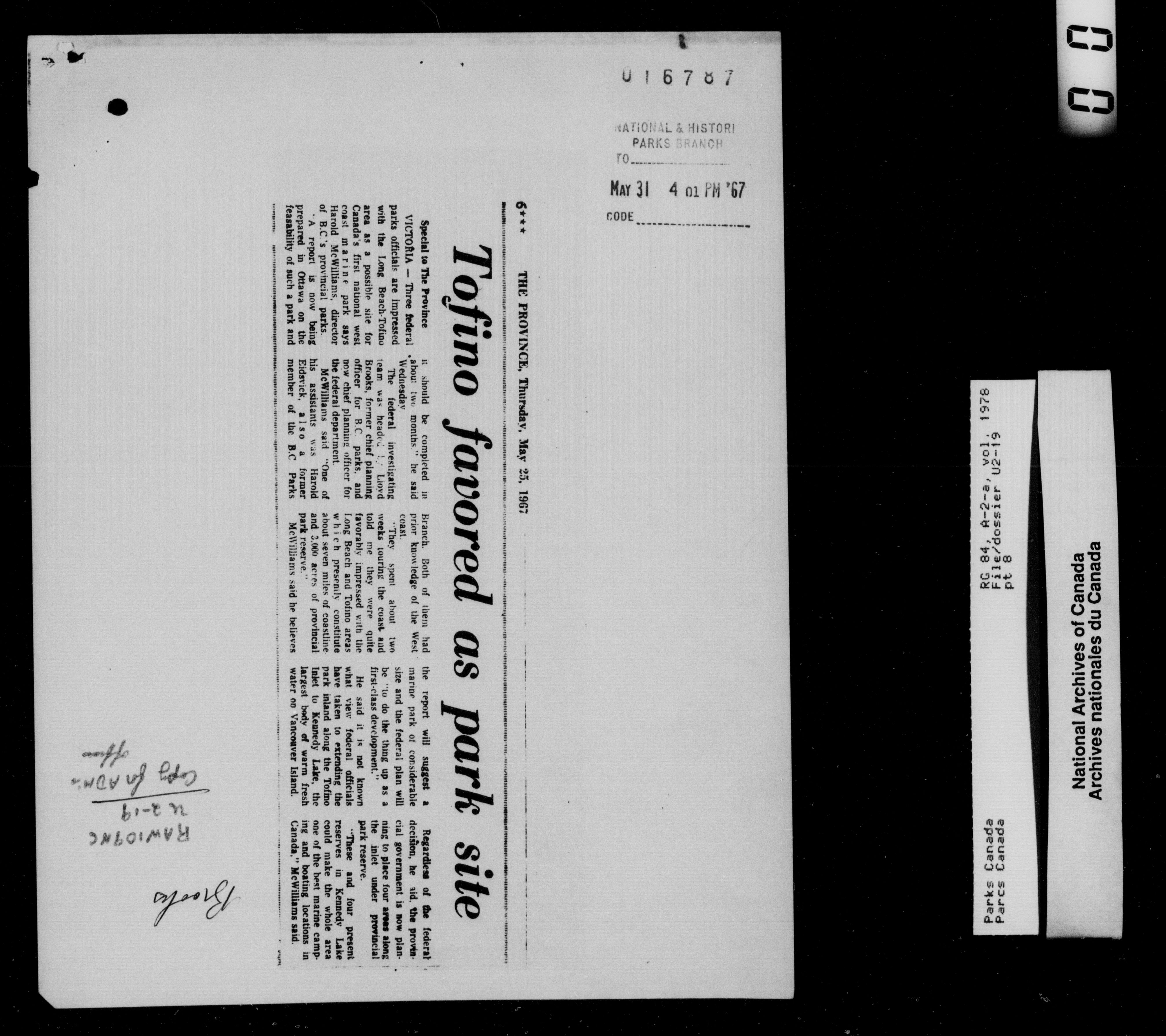 Department of Canadian Heritage, Canadian Parks Service : Park/subject classification system - 11257