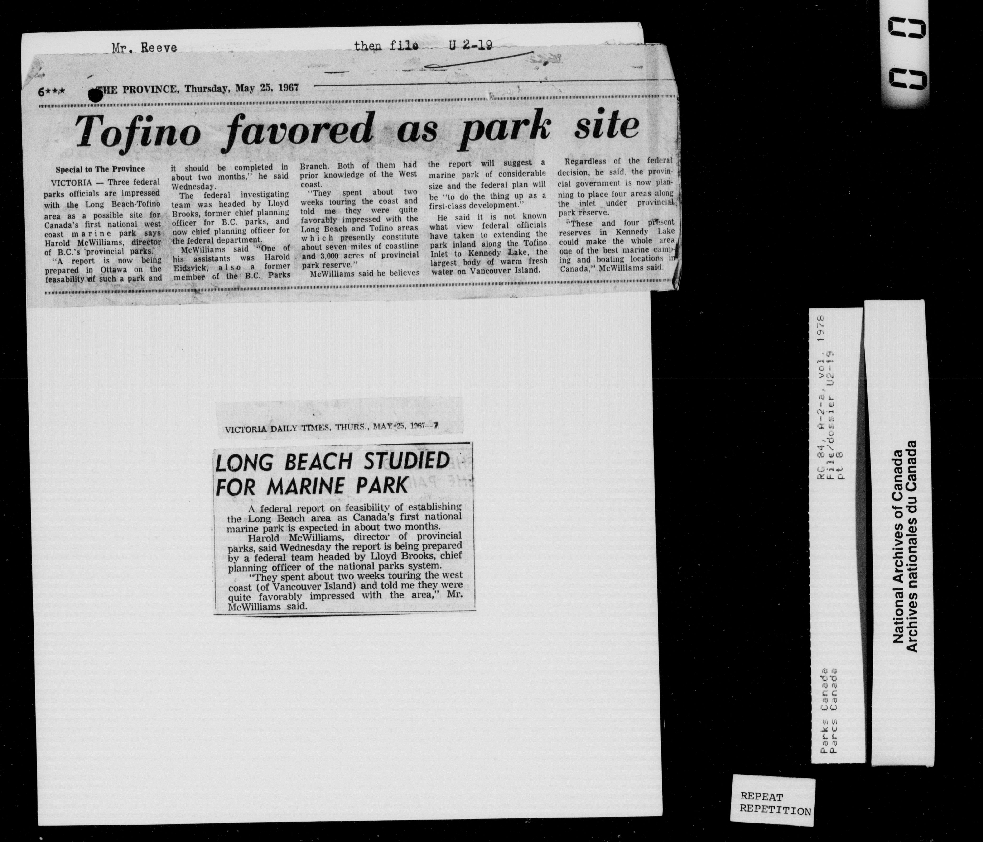 Department of Canadian Heritage, Canadian Parks Service : Park/subject classification system - 11257