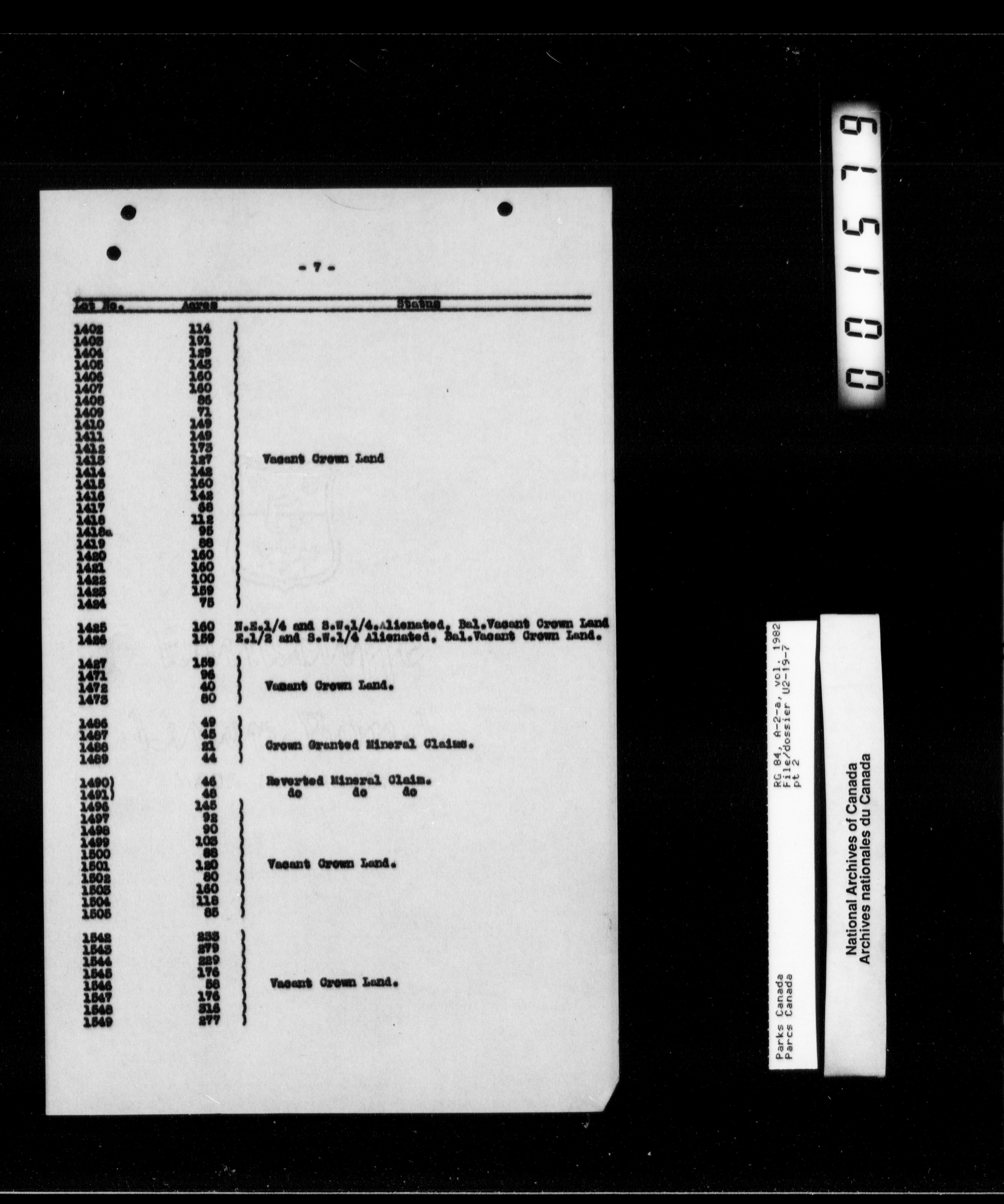 Department of Canadian Heritage, Canadian Parks Service : Park/subject classification system : T-11260