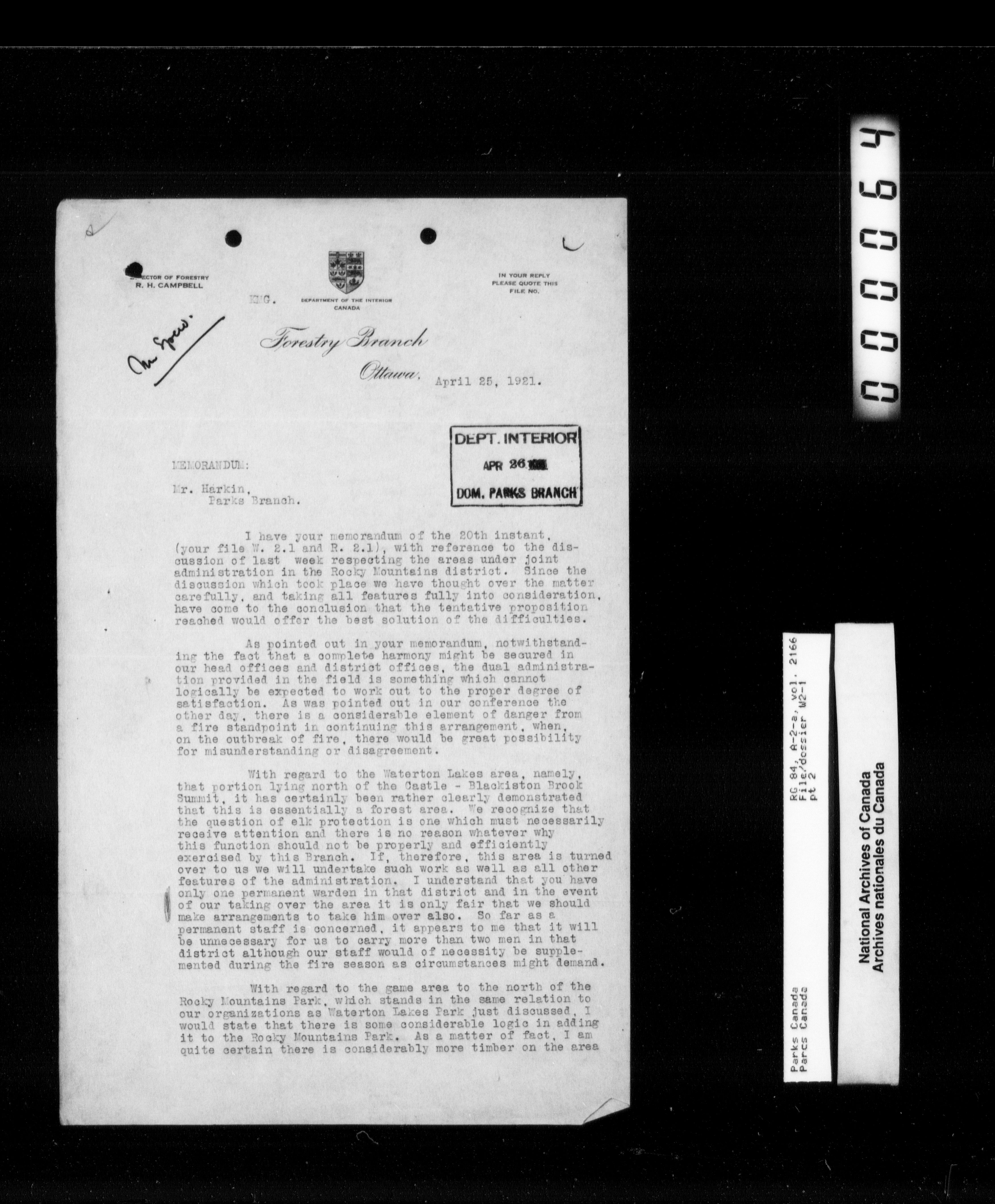 Department of Canadian Heritage, Canadian Parks Service : Park/subject classification system - 11267