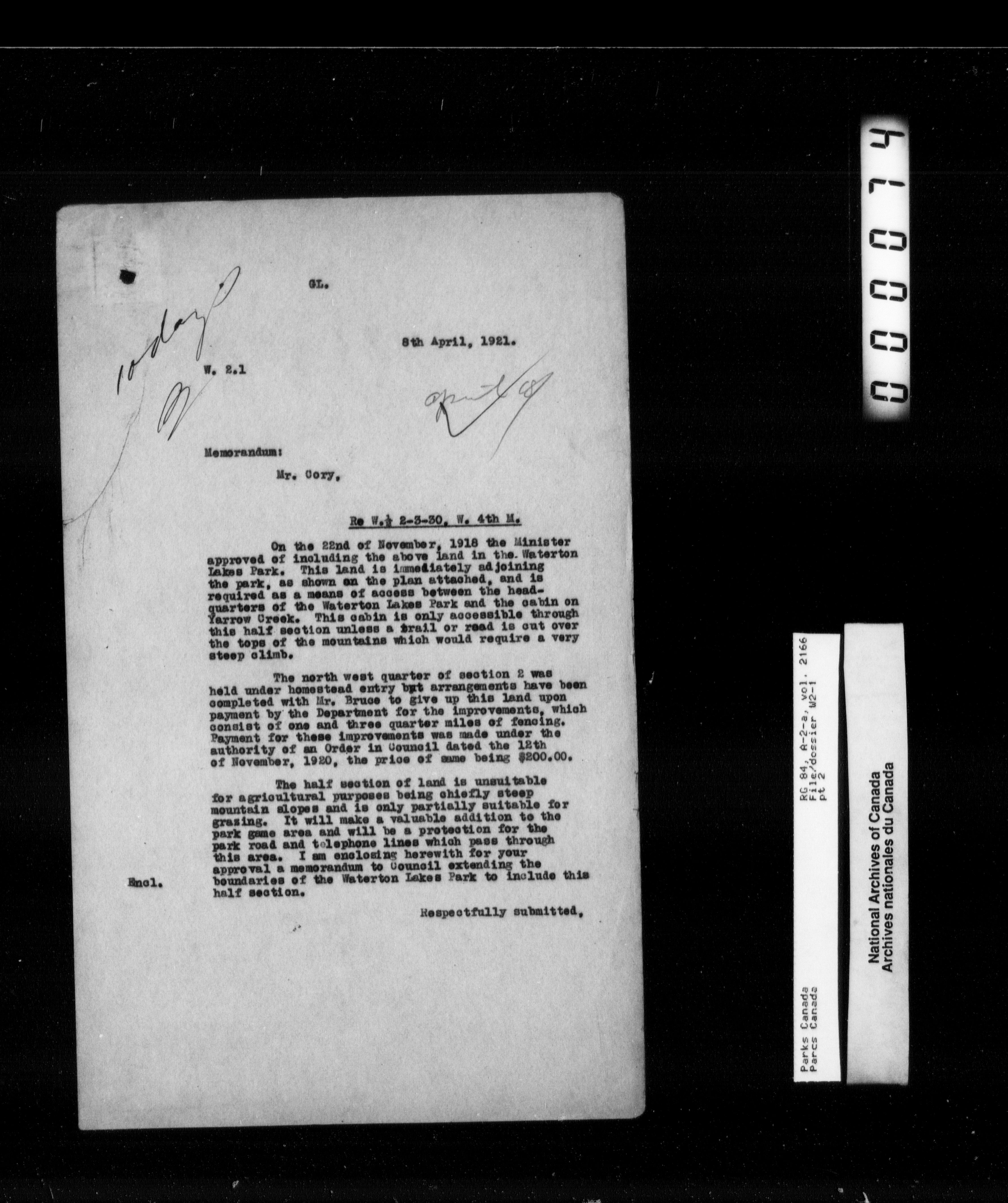 Department of Canadian Heritage, Canadian Parks Service : Park/subject classification system - 11267