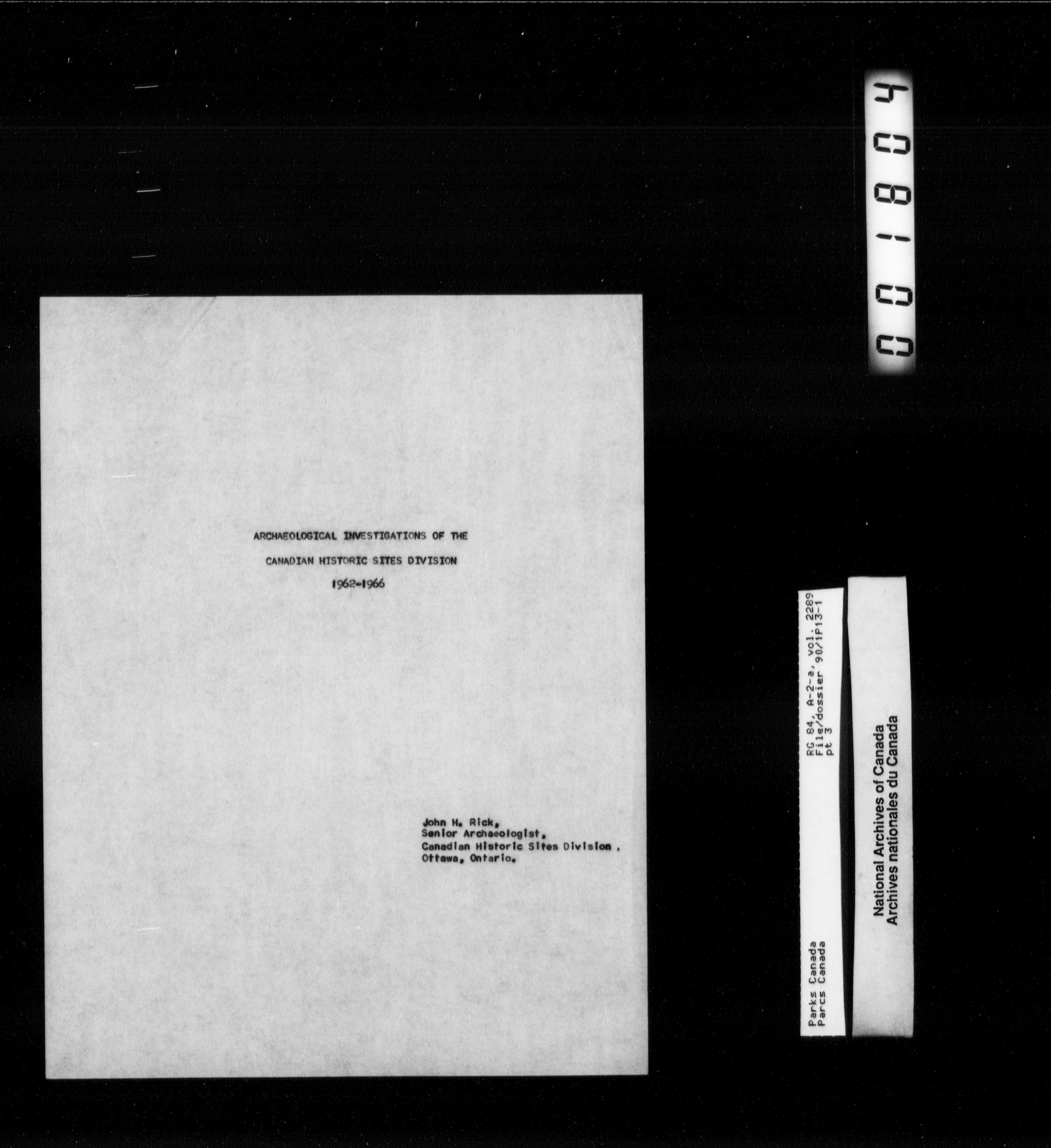 Department of Canadian Heritage, Canadian Parks Service : Park/subject classification system - 11269