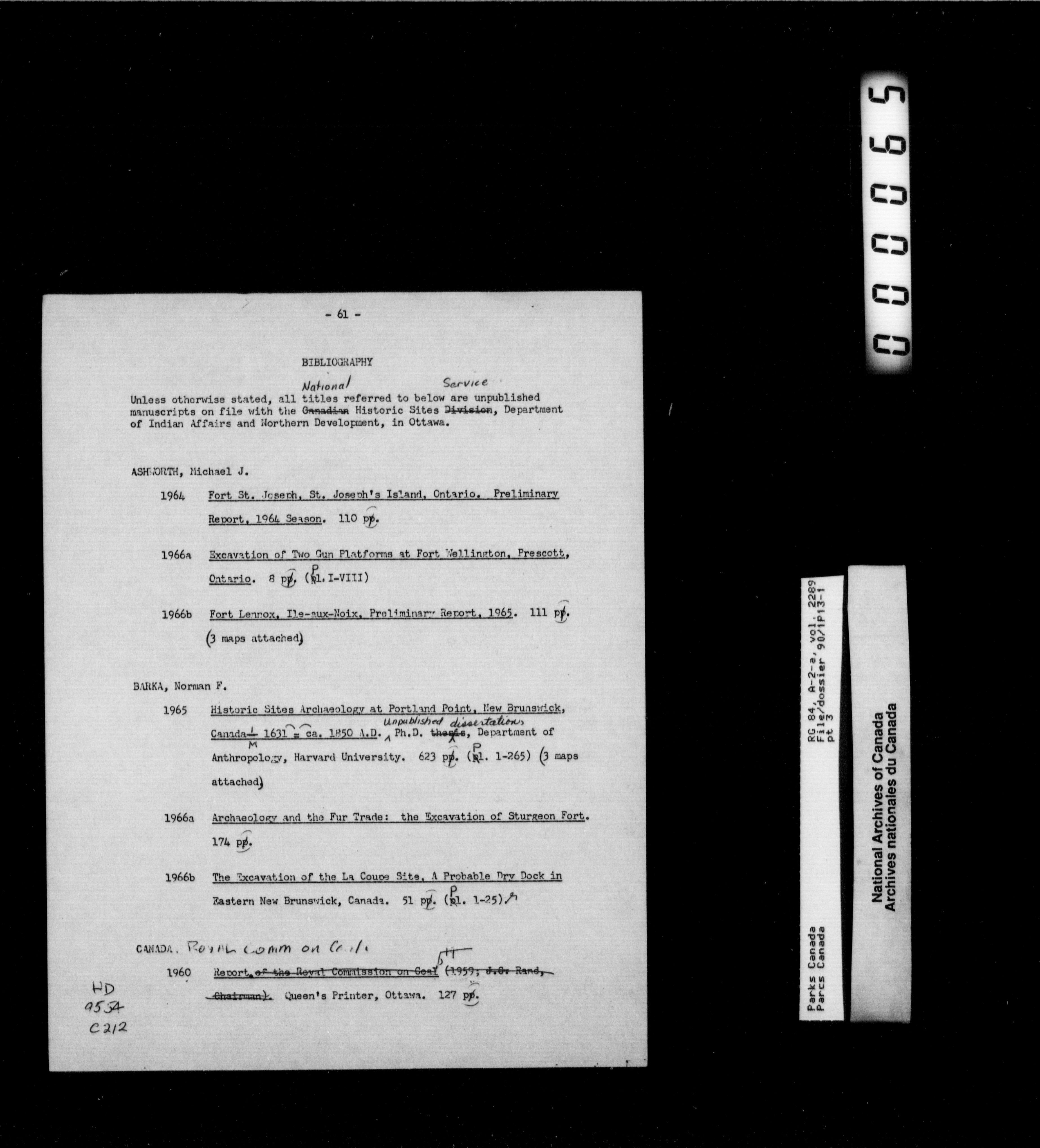 Department of Canadian Heritage, Canadian Parks Service : Park/subject classification system - 11270