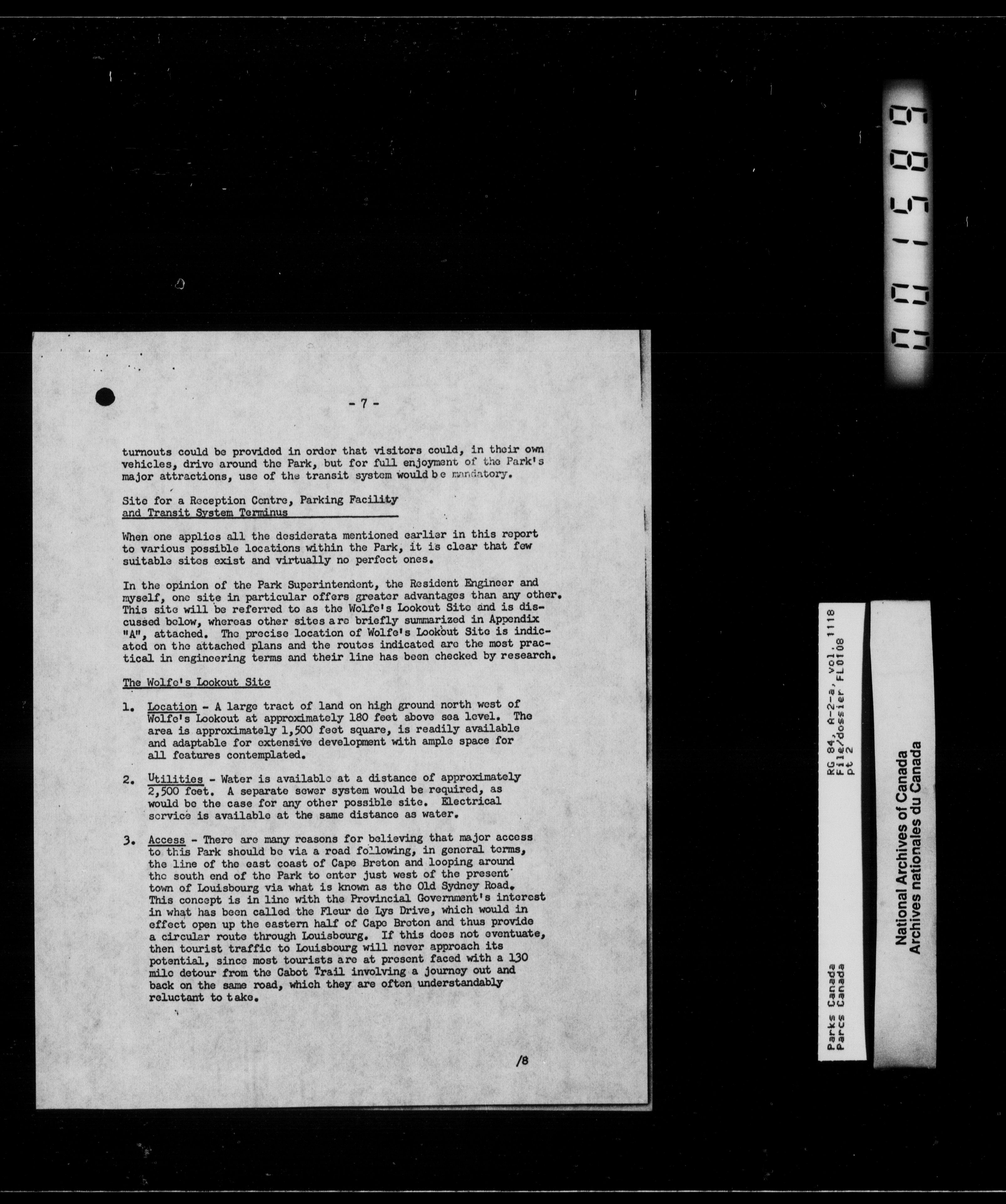 Department of Canadian Heritage, Canadian Parks Service : Park/subject classification system : T-11289